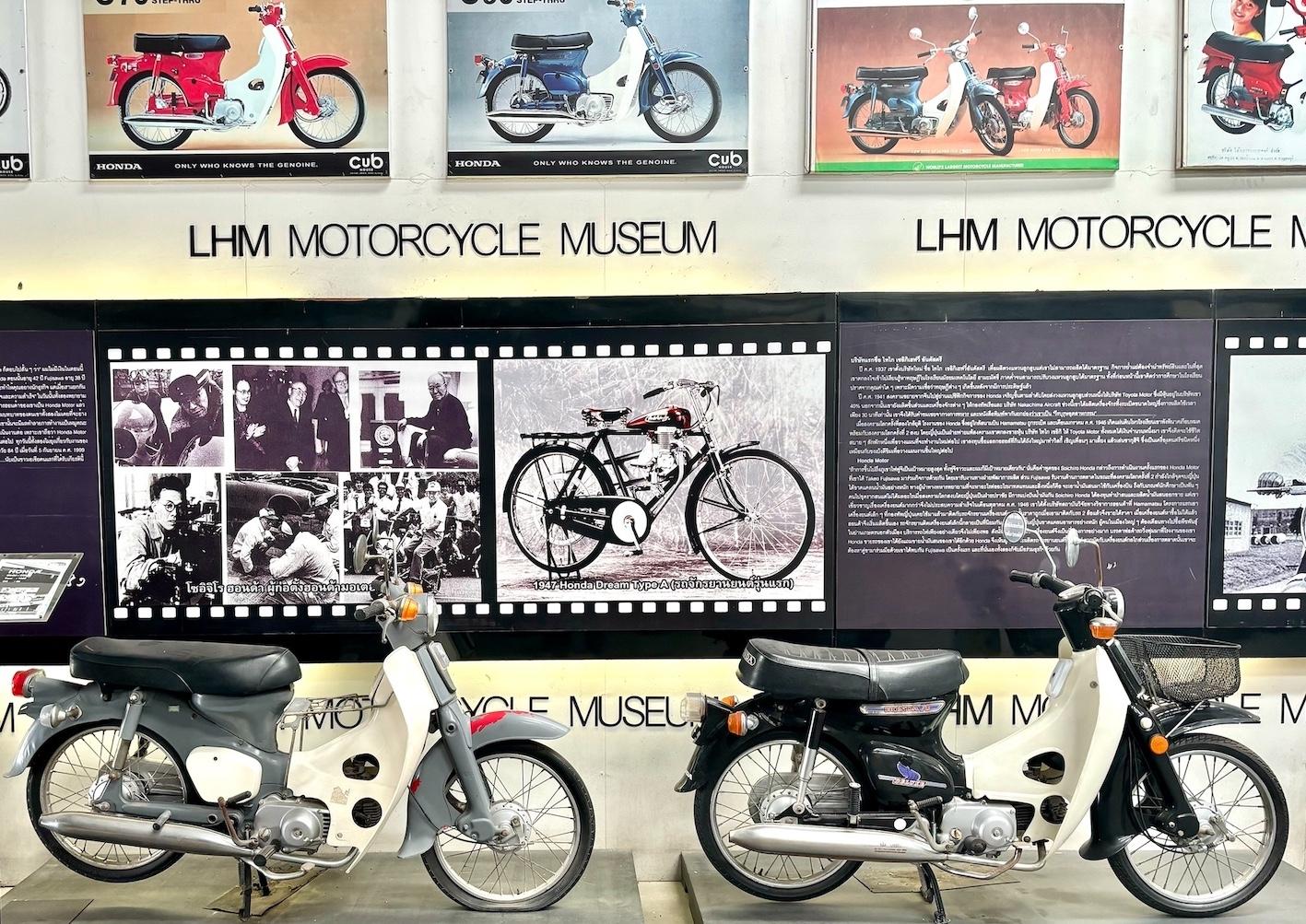 タイで販売された全ての日本車を展示する稀有な素晴らしいディーラー私設LHMモーターサイクルミュージアムでもカブの変遷の歴史が展示されてます。