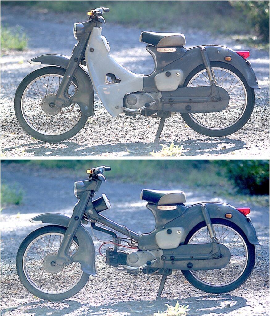 レッグシールド下端が広いのは冷却性の向上と思われます。このような型変更を躊躇なく行ったのも当時のホンダの改良への姿勢です。また2輪は早くから海外生産を開始し現地ニーズを合わせたきめ細かなモデル開発を行った事も現地の人々に受け入れられた要因です。