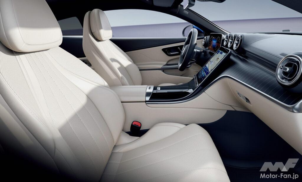 このたび発売された「CLE 200クーペ スポーツ」には、204ps/320Nmを発するM254型2.0L直列4気筒ガソリンターボエンジン+9速AT(9Gトロニック)に、第2世代の「ISG(インテグレーテッド・スターター・ジェネレーター)」を組み合わせたマイルドハイブリッドを搭載。後輪を駆動する。ISGは最大で23ps/205Nmの電動ブーストを可能で、滑らかで力強い加速を実現している。WLTCモード燃費は14.5km/Lと発表された。
