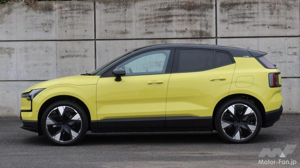 XC40のBEVはエンジンを搭載する仕様と(CMA)プラットフォームを共有しているが、EX30はSEA(Sustainable Experience Architecture)と呼ぶBEV専用のプラットフォームを適用している。20インチ(オプション設定)の大径タイヤをボディの四隅に配置できるのも、新しいBEV専用プラットフォームの恩恵である。