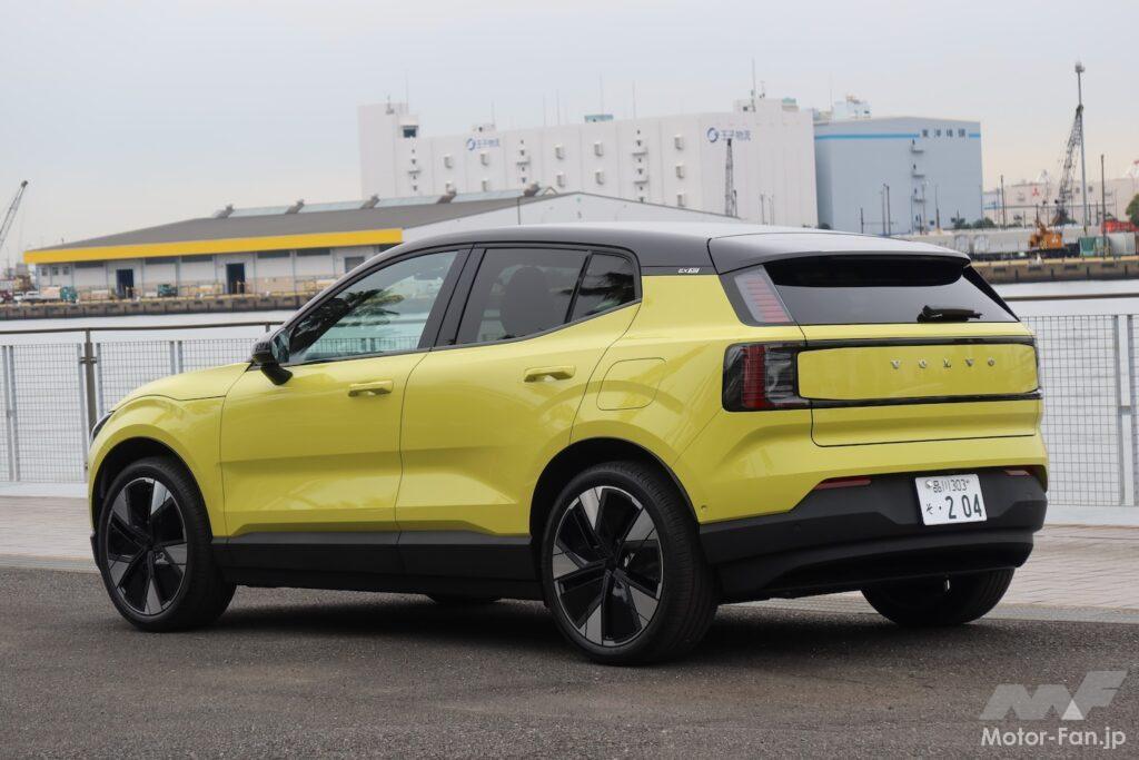 日本に導入されるEX30は3タイプあるうちの最上位の装備レベルで、ラインアップのなかでは航続距離が最も長くなる、大容量のバッテリーを積んだシングルモーターの組み合わせが選択された。バッテリー容量は69kWh。WLTCモードによる一充電あたりの走行距離は560kmである。リヤに搭載する新開発モーターの最高出力は200kW、最大トルクは343Nmで、0-100km/h加速は5.3秒でこなす。