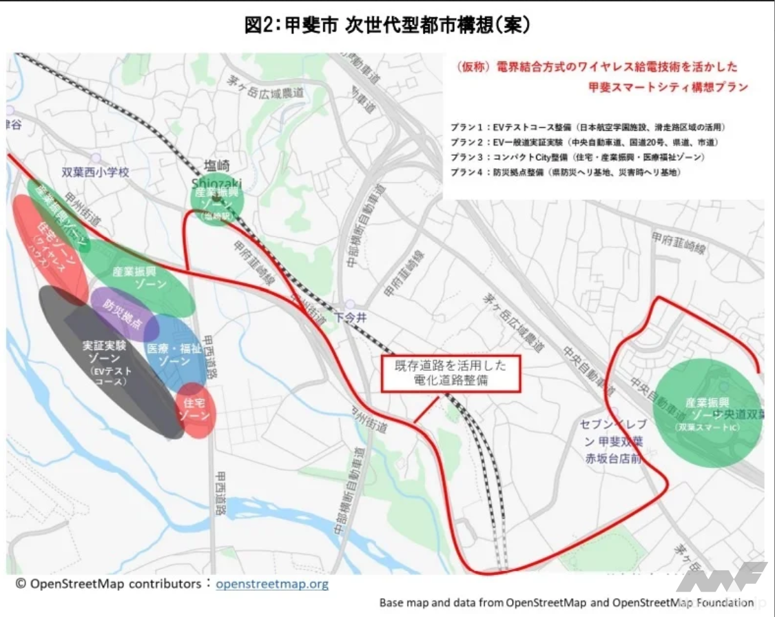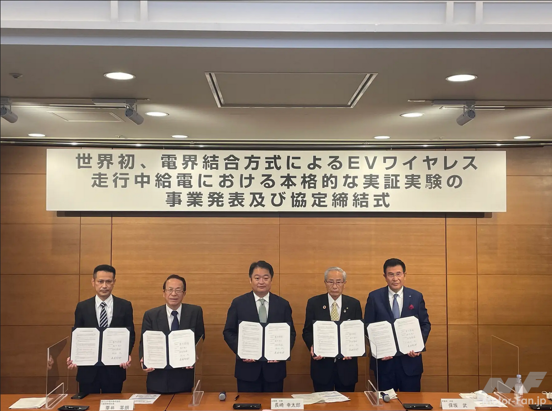 去る2021年11月5日に山梨県庁にて締結された産学官連携協定を「具体化」「拡大化」するための第一歩として、今回改めて5者協定が締結された。日本航空学園の敷地内に全長約500mの周回コースを設け、世界初の電界結合方式によるEVワイヤレス走行中給電の本格的な実証実験が行なわれる。