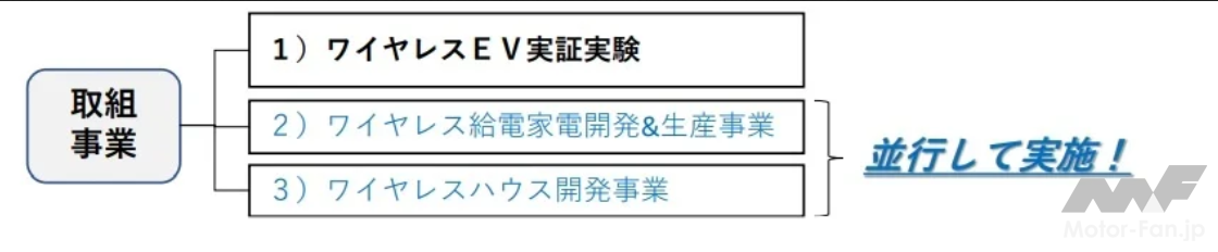 今回の5者連携協定においては、ワイヤレスEVの実証実験だけではなく、日本航空学園敷地内において並行して他2つの事業も行なわれる。