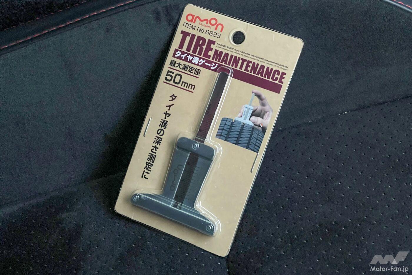 10000kmを超えたので、タイヤの溝の深さもチェックしてみることにした。と思ったらタイヤ溝ゲージが見当たらない。仕方がないので、3月13日の取材前にオートバックス高井戸店に立ち寄って、タイヤ溝ゲージを購入した。