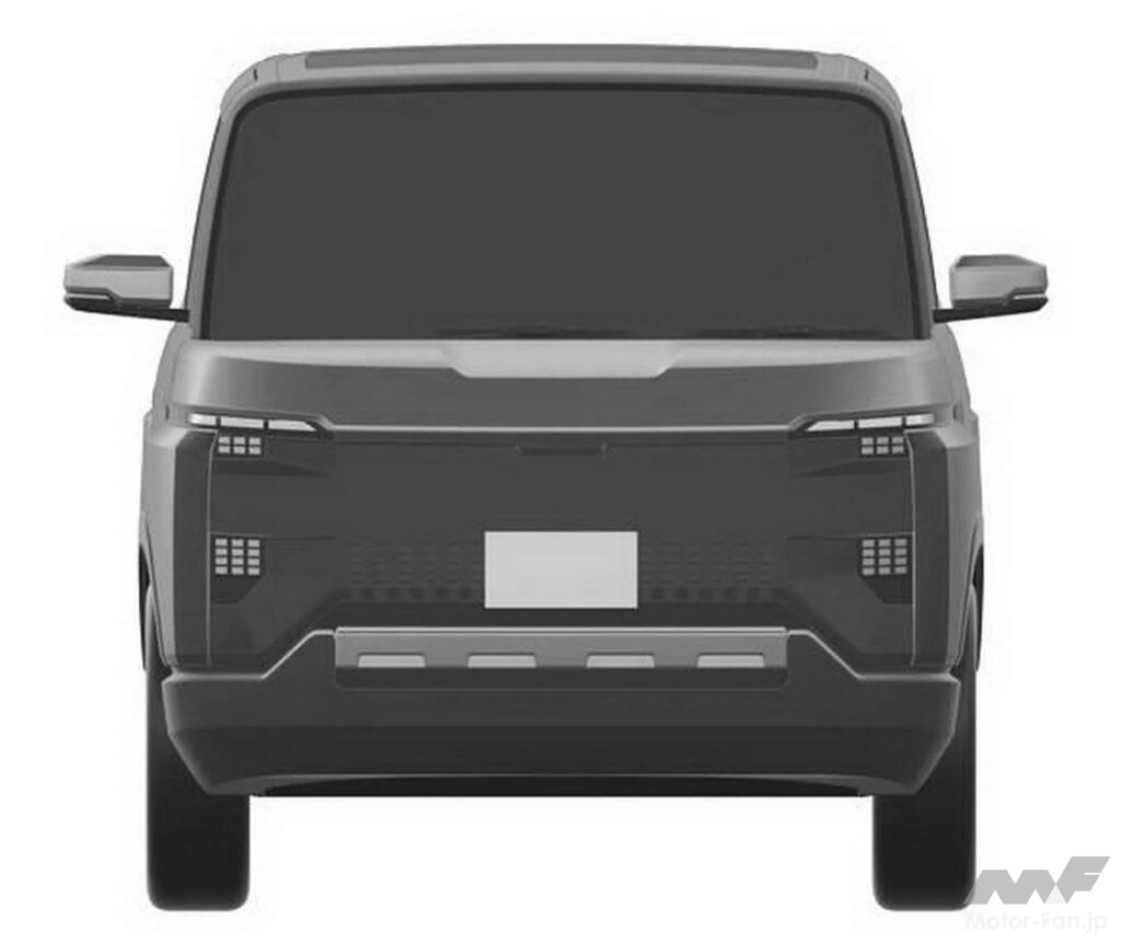 特許画像では、ルーフラックとバスケットが欠落していることを除いて、スライドドアレールを備えた箱型のホイールアーチフレア、黒いA、B、Dピラー、ピクセル化されたヘッドライトの上にあるスリムなLEDデイタイムランニングライトなど、コンセプトカーと一致している。