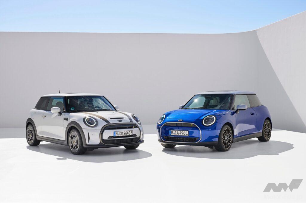 先代までのミニは深絞り形状のボンネットを丸く切り欠き、そこにボディ付けのヘッドランプを埋め込んだデザイン。それゆえボンネットの切り欠きにリング状のメッキモールを付けていた。新型のICE版は先代と同じ構成なので黒いリングが存在するが、BEV版にはそれがない。ボンネットを丸く切り欠くのをやめたからだ。その結果、ボンネット、フェンダー、バンパーという三方向からの面の流れを、ヘッドランプでダイレクトに受け止めなくてはいけなくなった。