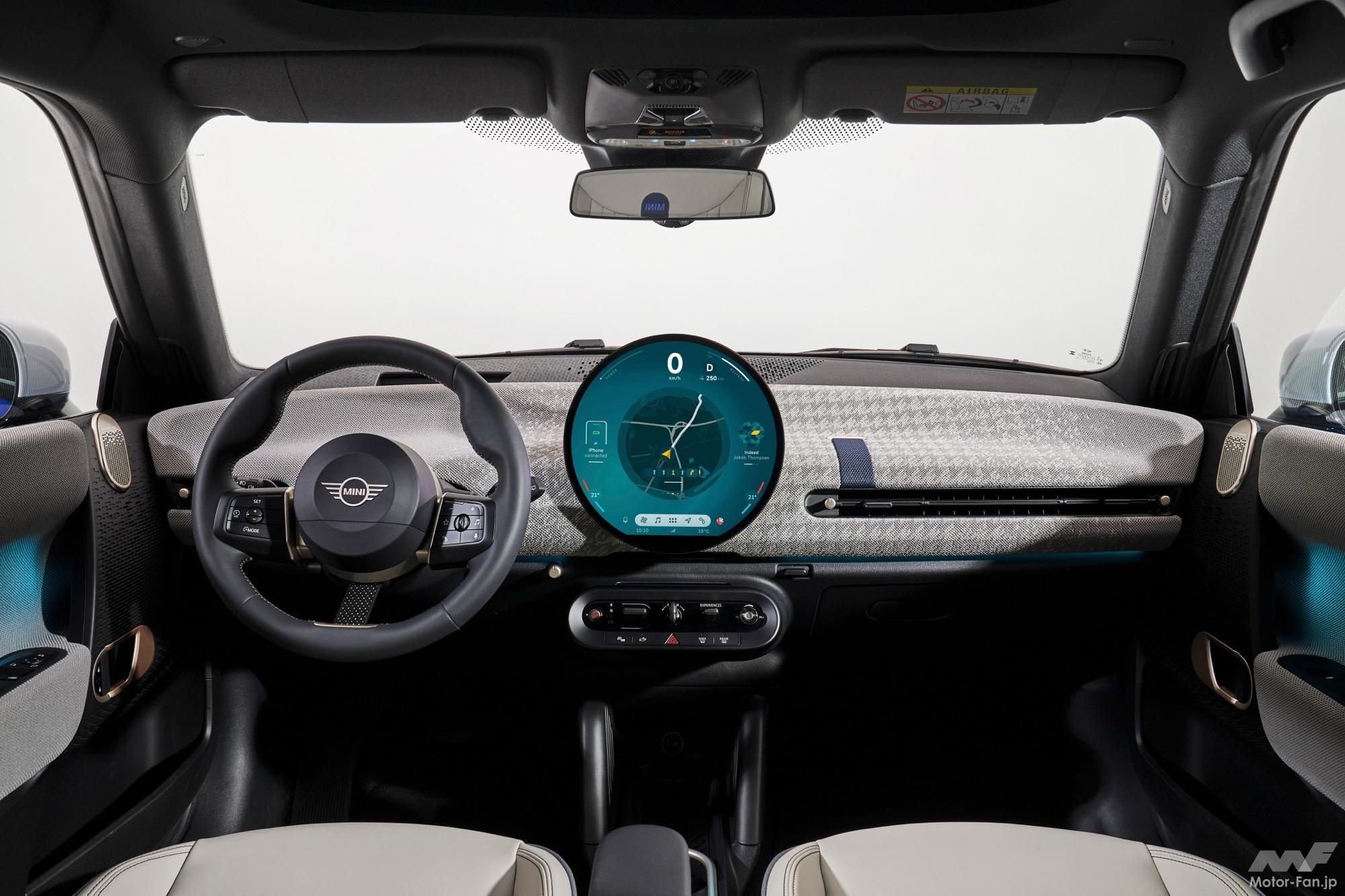「BEVはウインドシールドの丸みが強い。元祖ミニのように短いボンネットを実現したかったからだ」。BEV専用プラットフォームを活かしてオーバーハングもボンネットも短くできたから、モールを取り去る決断に至った。20年以上も続いてきた要素がなくなったので、「ミニらしくない」と思う人もいるかもしれないが、その場合はICE版が選択肢になるだろう。