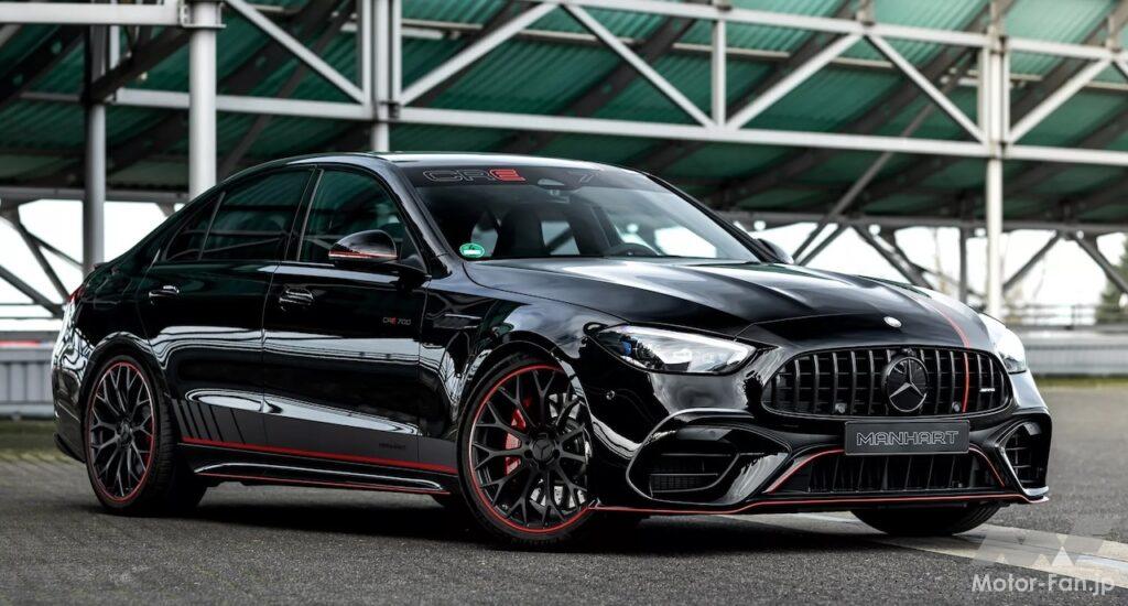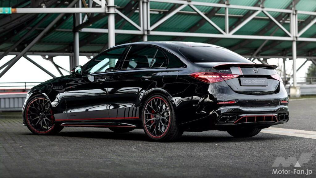 純正のメルセデスAMG「C63S Eパフォーマンス」では、最高出力680ps、最大トルク1020Nmを発揮する。一方このマンハートチューンドモデルは、2.0L直列4気筒ターボエンジンに「MHtronic」モジュールを追加することで、プラグインハイブリッドパワートレインの総合出力を725ps、最大トルク1120Nmまで増加させることに成功している。