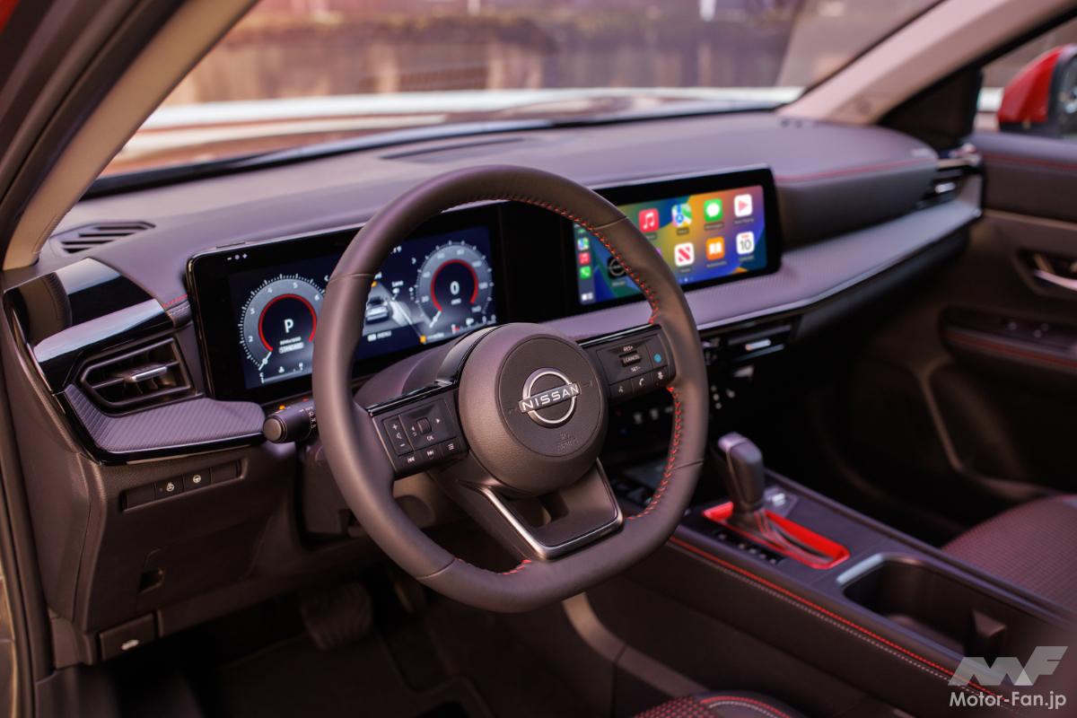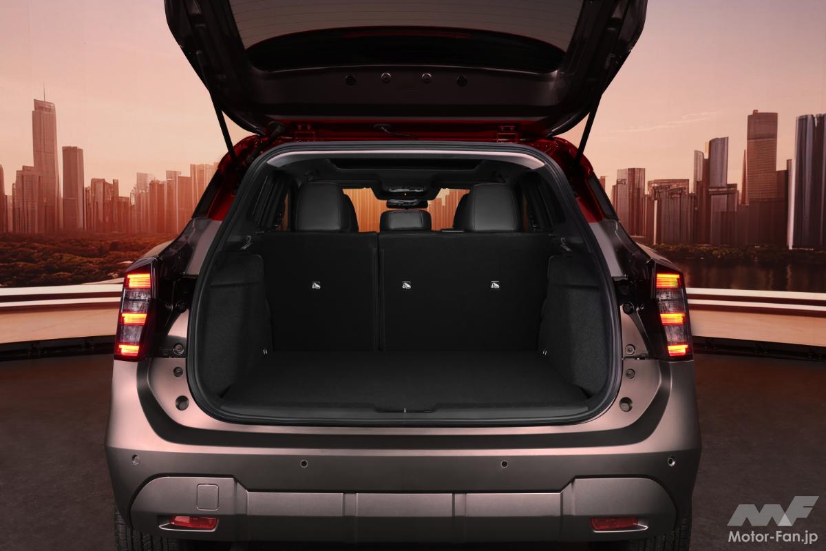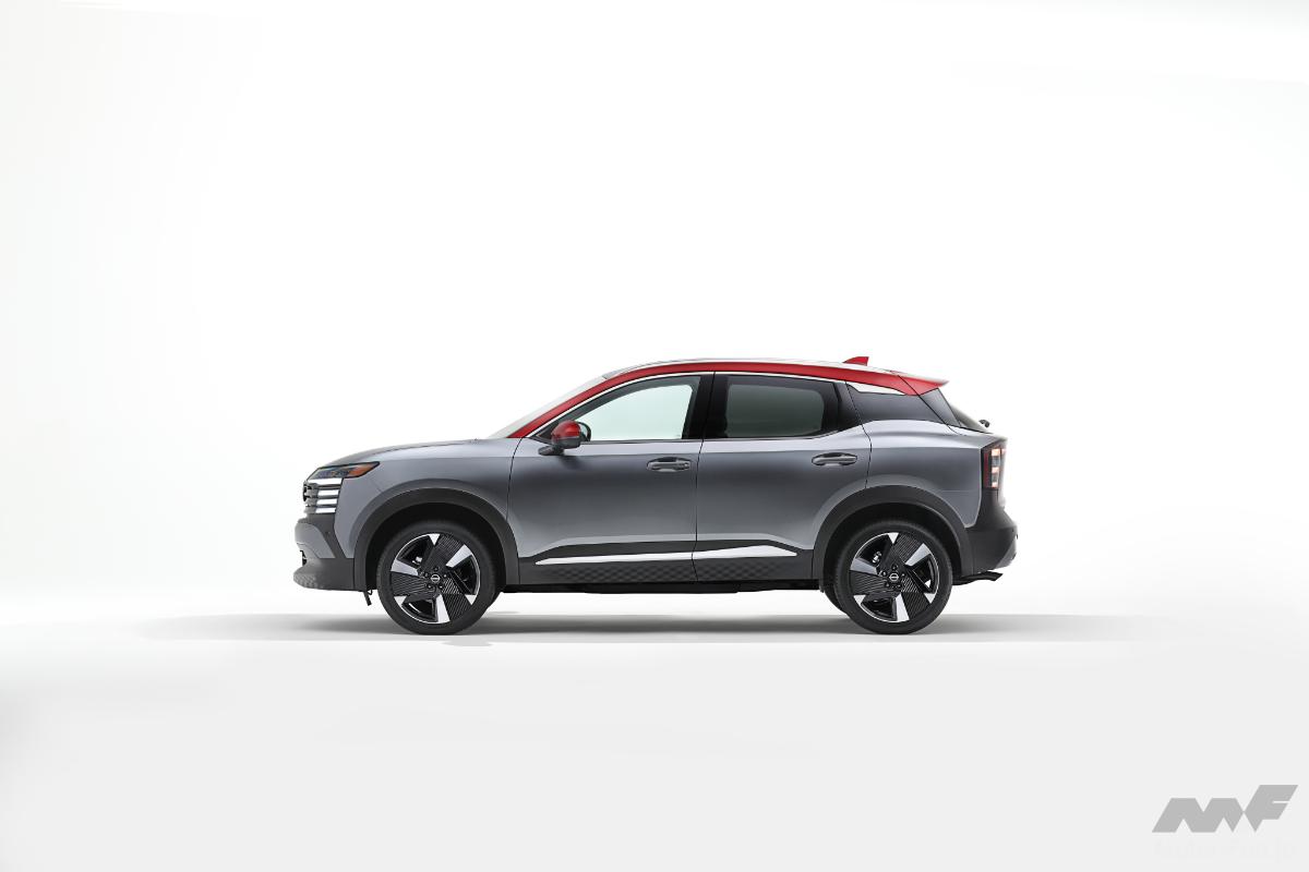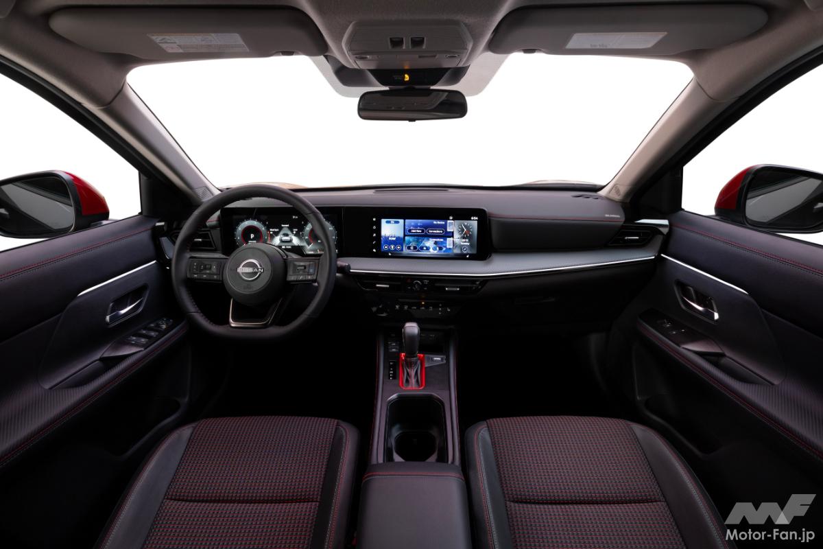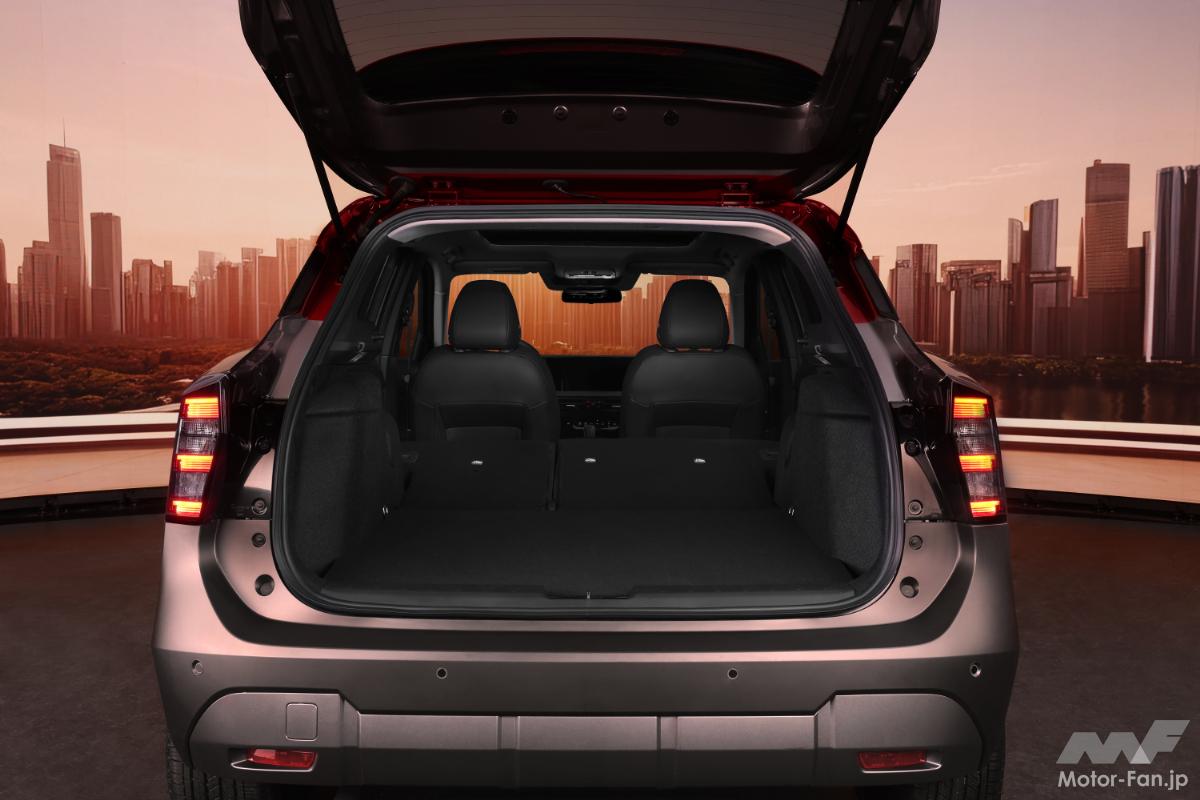 先代モデルと比較して、2025年型キックスはボディサイズが大きくなり、広々としたカーゴスペースが確保されている。また、新たに用意されたパワーパノラミックサンルーフからは太陽の光がたっぷりと取り込まれ、広々とした室内空間がさらに強調されている。ダッシュボードには、12.3インチのデュアル・ディスプレイが装備される。