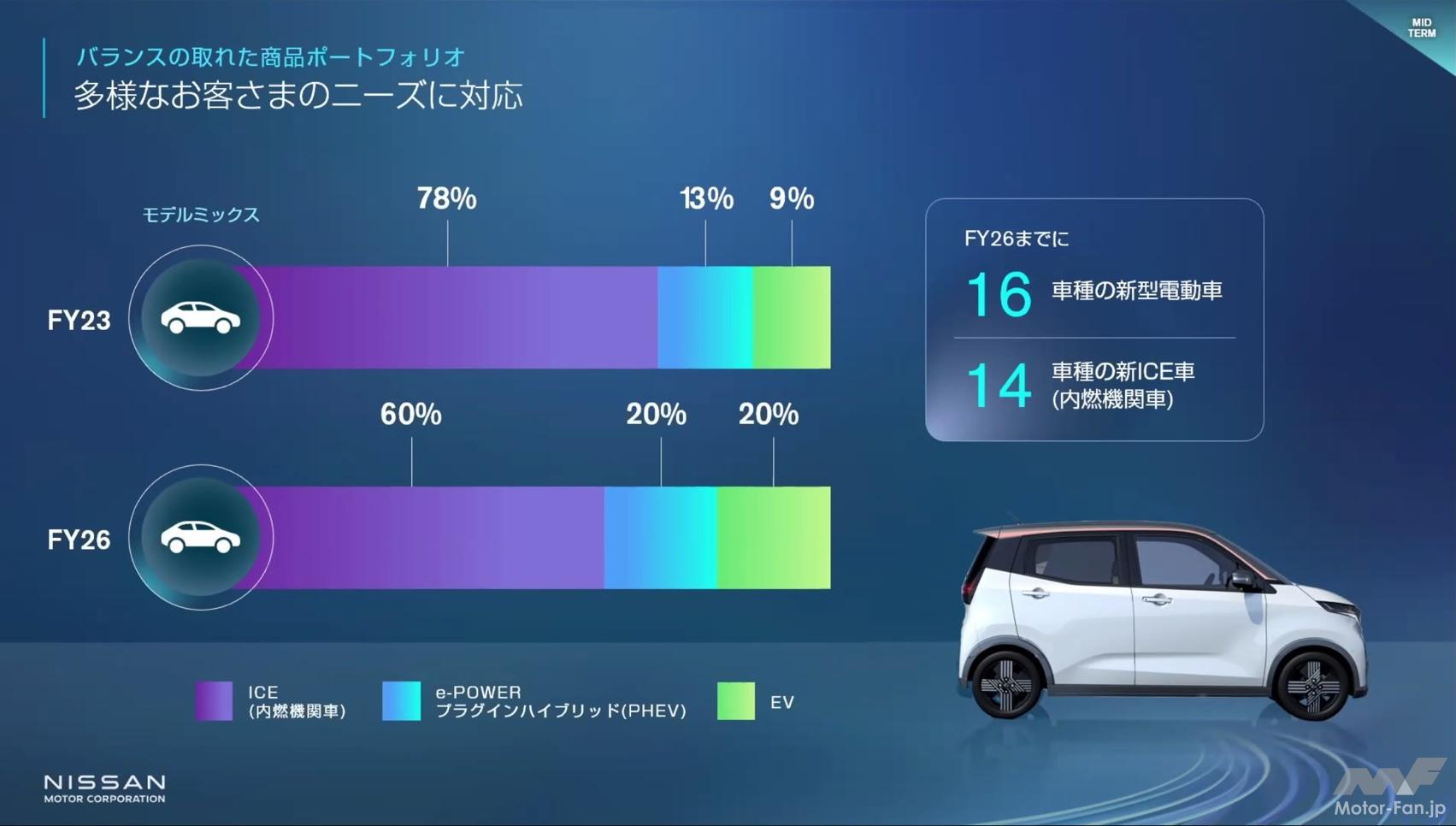 EVの販売構成比は2026年度に40%を目標として、16車種の電動車を投入する予定だ。