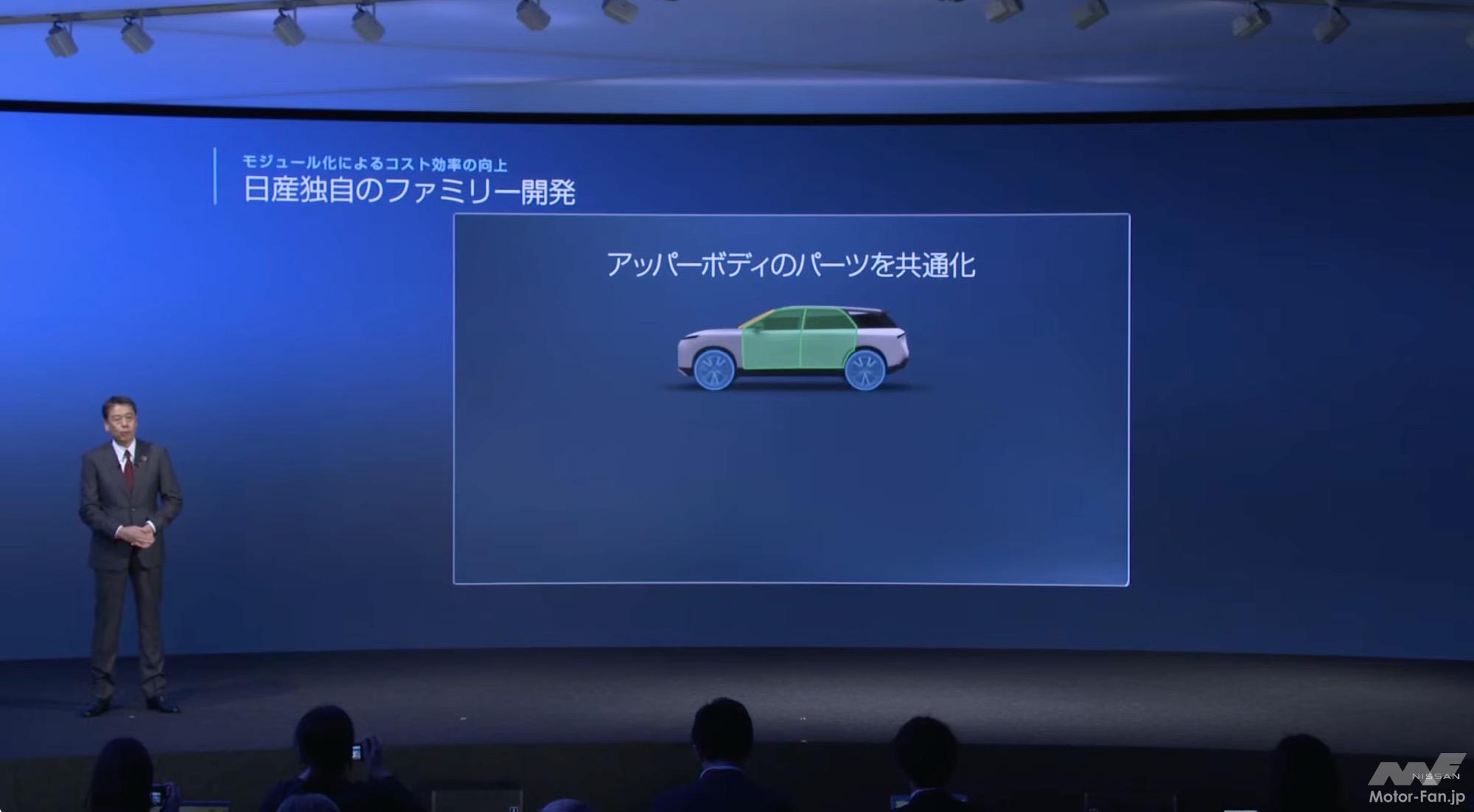 次世代EVではアッパーボディなどを共通化したファミリー開発により、開発期間や費用を大幅に圧縮する。