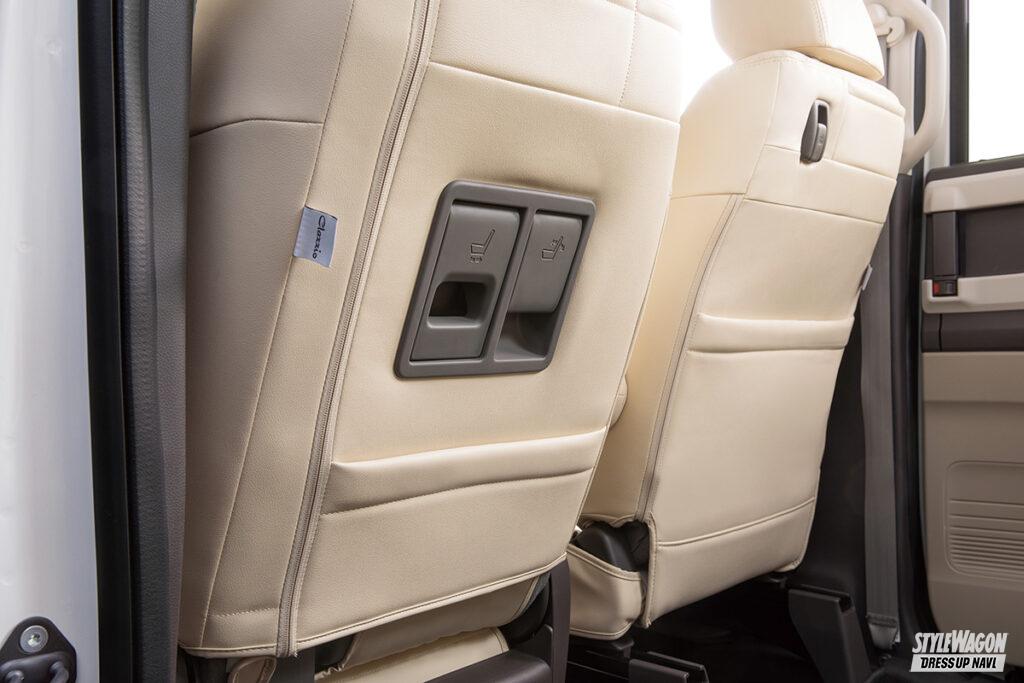 純正シートに被せることで、色や縫製ラインを変えることができ、車内をガラリとイメチェンできる。