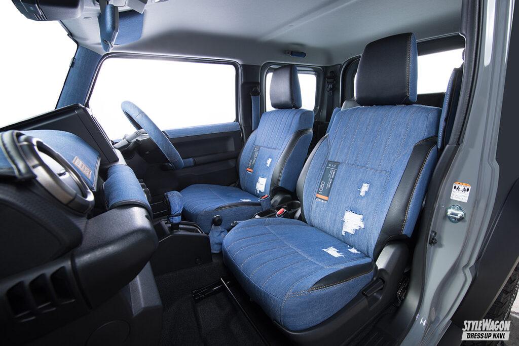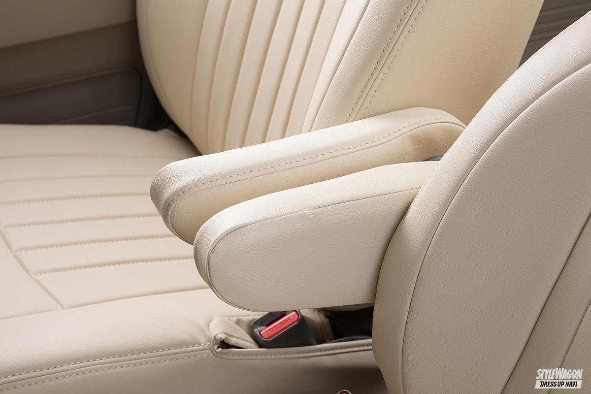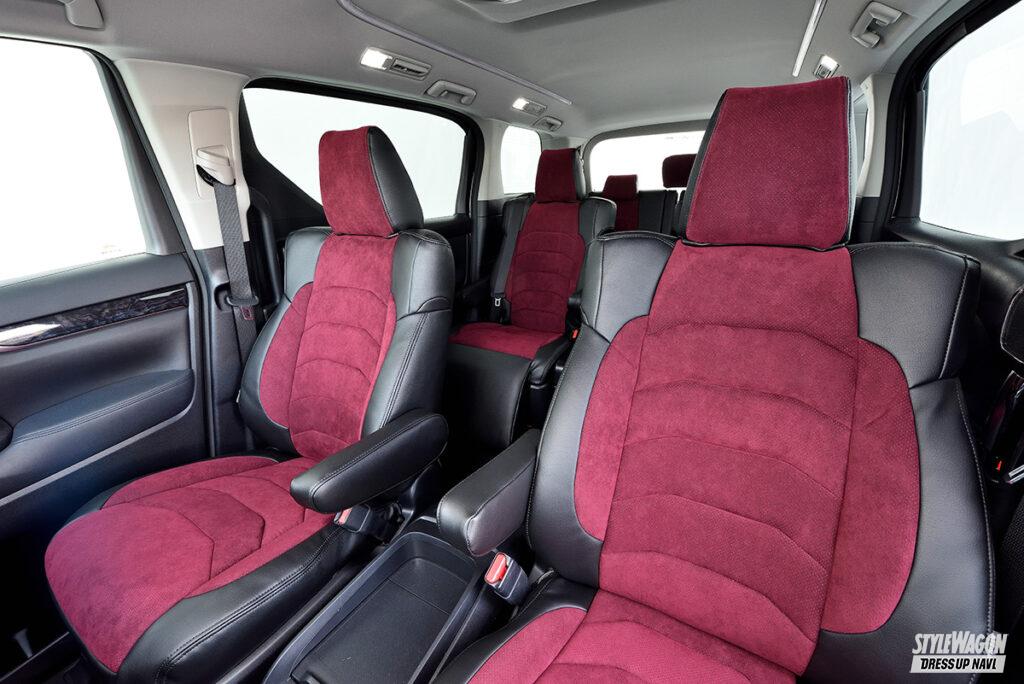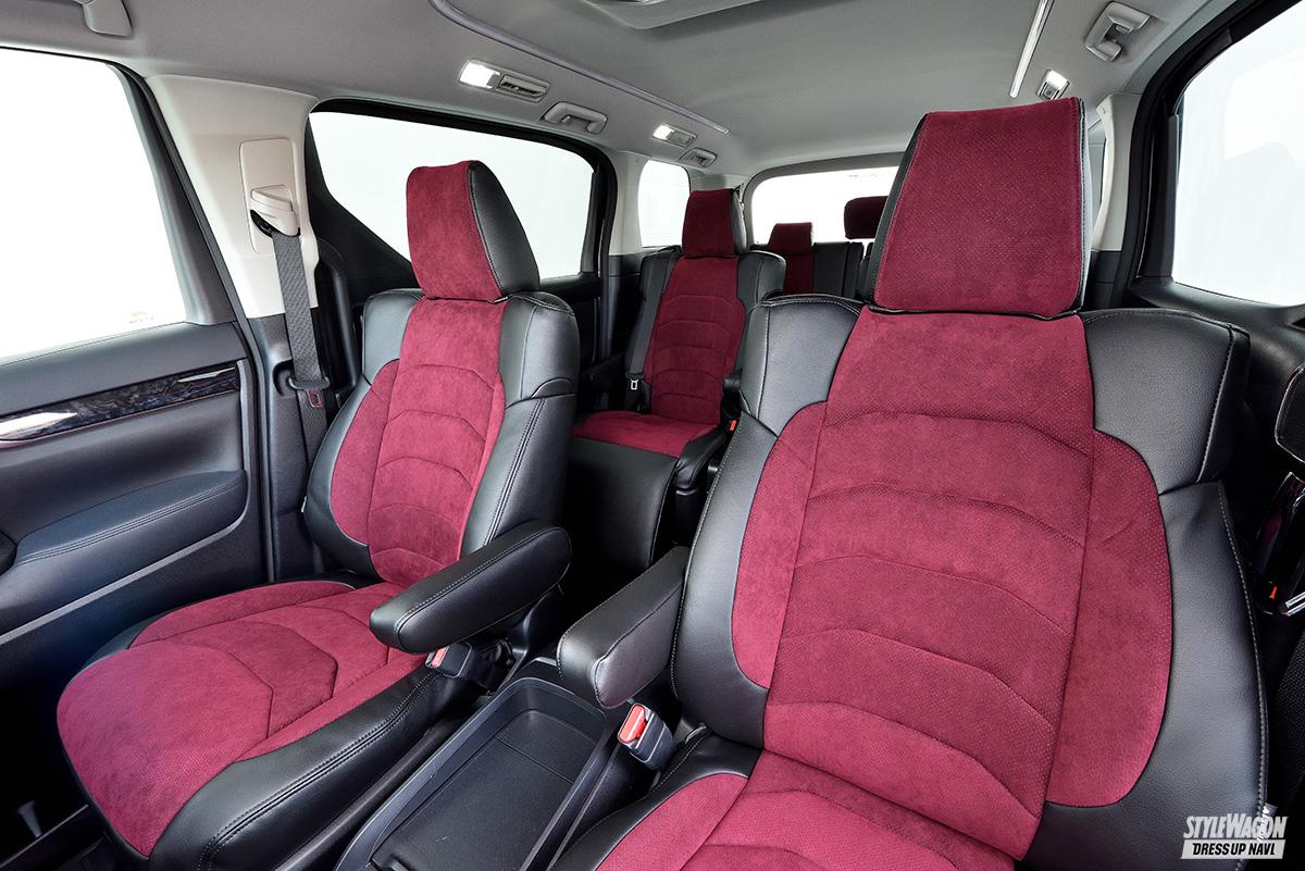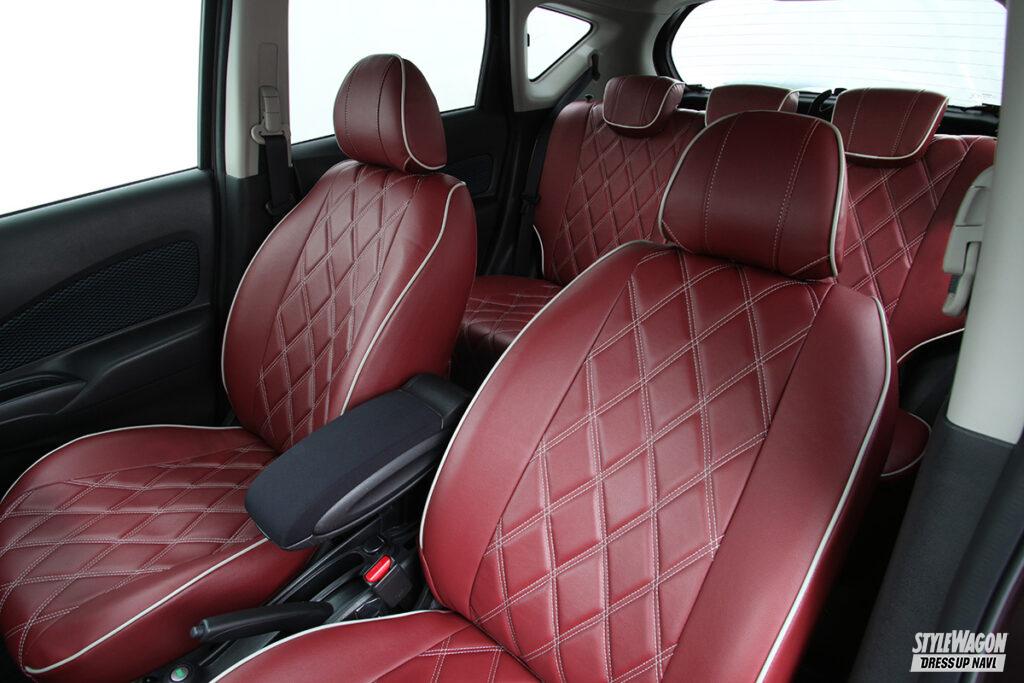 純正シートに被せることで、色や縫製ラインを変えることができ、車内をガラリとイメチェンできる。
