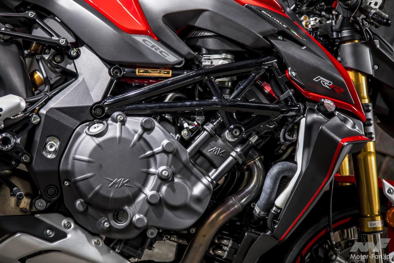約20年の歴史を誇るF4とブルターレは、エンジン+シャシーの基本設計を共有している。もっとも、F4が2010年にフルモデルチェンジを受けて第二世代に進化したのに対して、2011年以降のブルターレの第二世代は、エンジンの大幅刷新を図りつつも、シャシーは第一世代の構成を継承。とはいえ、2019/2020年から展開が始まった第三世代のブルターレ1000セリエオロ/RRは、F4の最高峰となるRCのエンジンとシャシーをベースにしながら、数多くの部品を新規開発している。