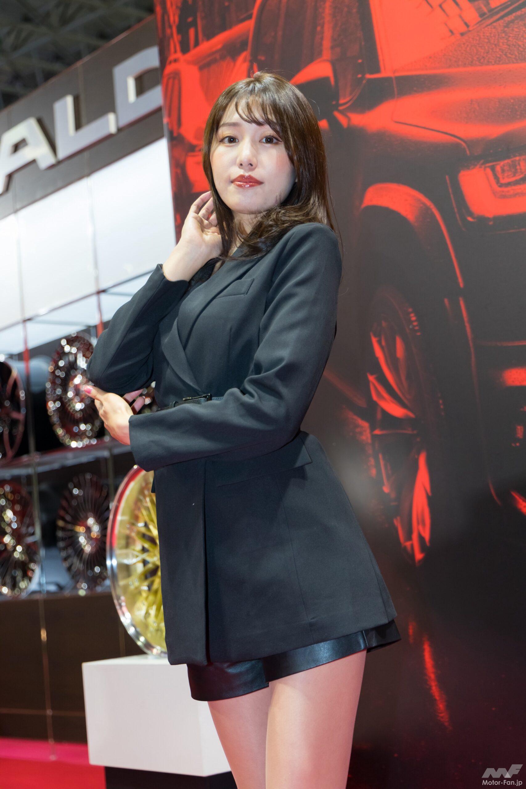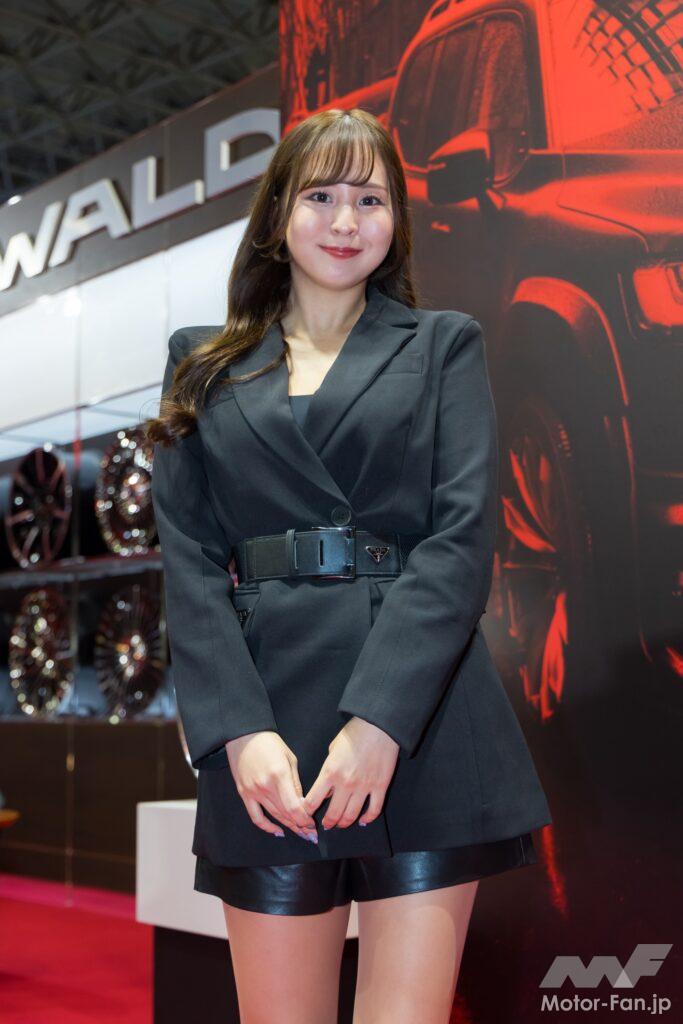 エアロパーツ、ホイール、各車種パーツなどを販売するWALD。久々のオートサロン出展となり、黒のスーツを着た美女3人がブースを華やかにさせた。