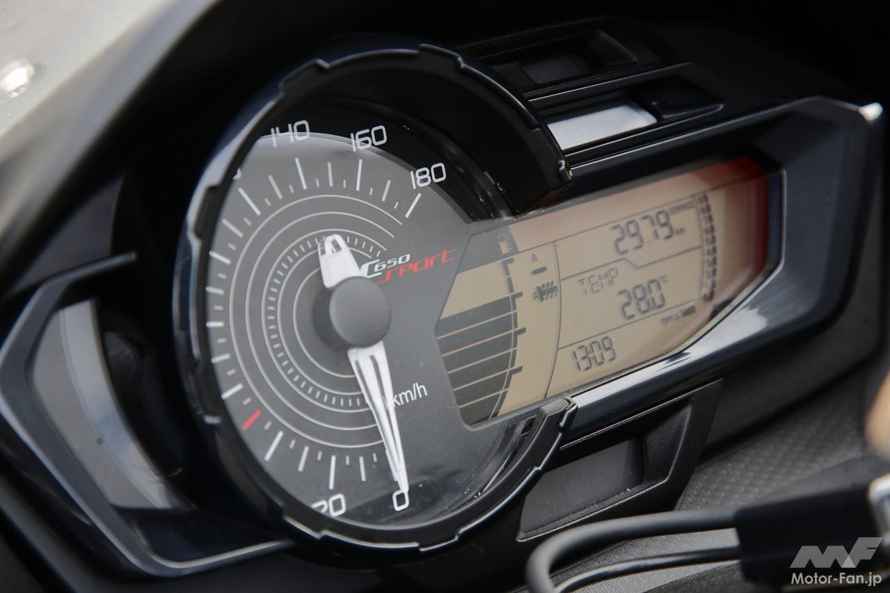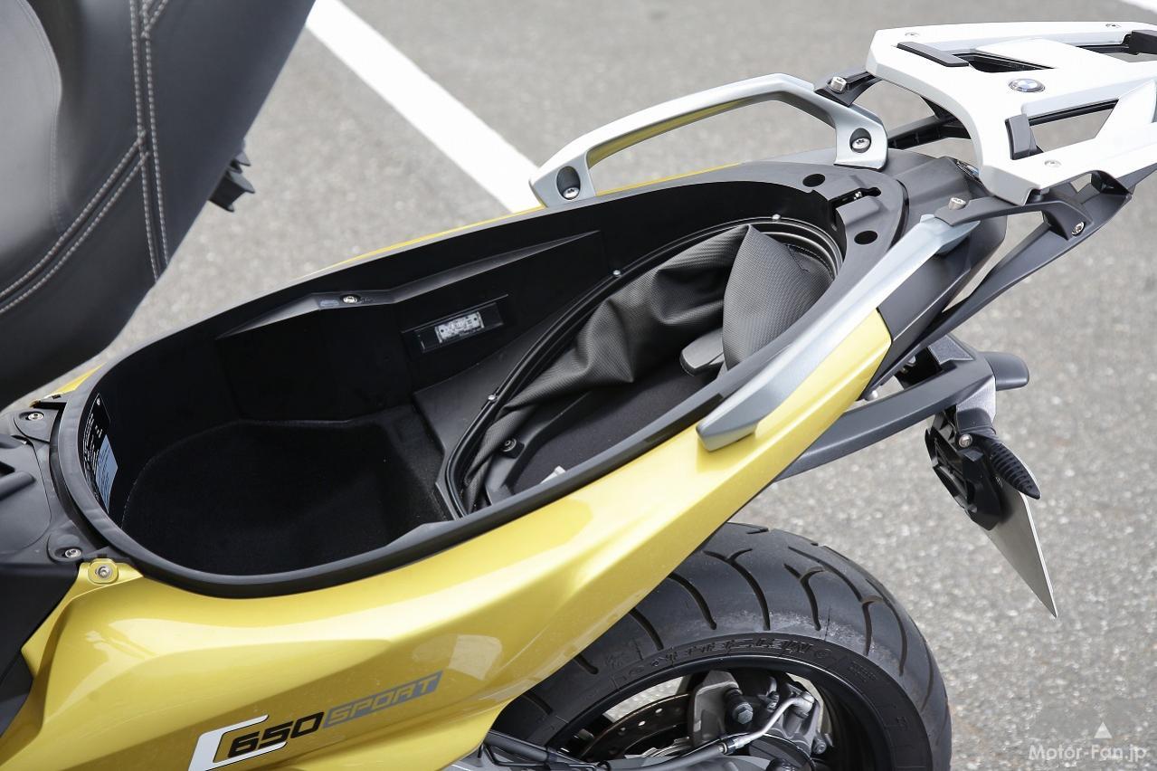 C650 Sportは走りの実力以外にも、サイドスタンドとパーキングブレーキが連動するシステムや容量可変のシート下スペースなど使い勝手を高めた機能も見逃せない!