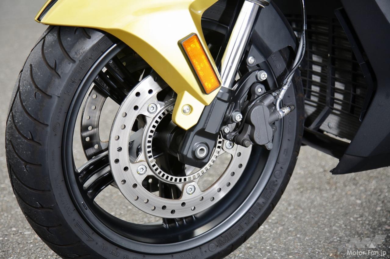 期待に胸を膨らませてエンジンを始動してみる。270度クランクをもつ水冷DOHCツインのサウンドはモーターサイクルと変わらないパルス感があり、ますますスクーターの枠組みを超えていると感じられた。