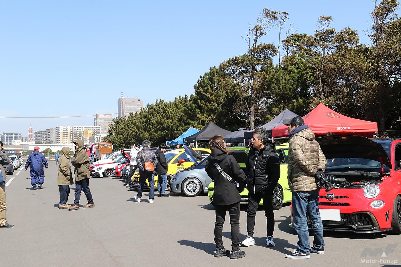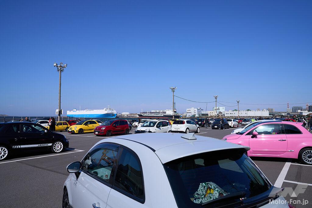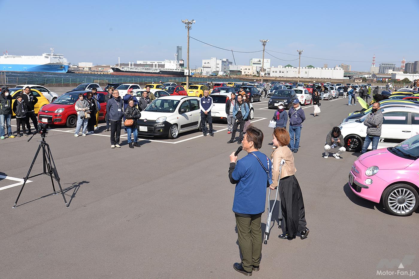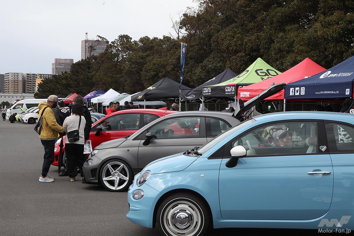 今回は初主催のリアルイベントとして、千葉県のフェスティバルウォーク蘇我/ハーバーシティ第2駐車場を貸し切ってフィアット&アバルト車だけのミーティングを企画。事前エントリーと当日受け付けを行い、約100台のユーザーカーが大集合。もちろんチンクエチェントが中心ではあるが、それ以外にもパンダやプント、懐かしのアウトビアンキA112など、思い思いにドレスアップしたりチューニングしたり、個性いっぱい華やかなラインアップがやってきた。