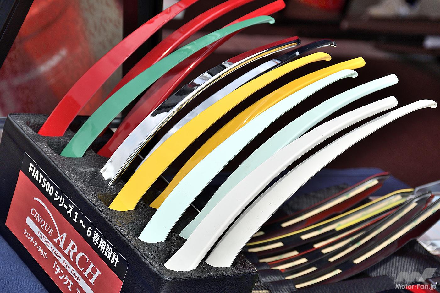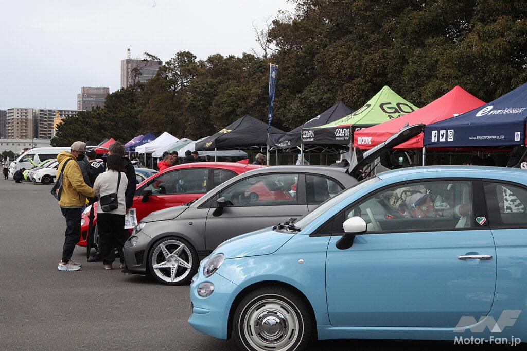 企業による出展ブースも22社を数え、フィアット&アバルトファンの間ではお馴染みのメーカー、ショップ、ブランドが勢揃い。最新のパーツやグッズ、ユーザー憧れのデモカーが端から端までずらりと並んだ姿は壮観だ。