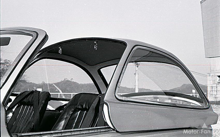 ルーフというよりも、アッパーボディが後方にスライドして乗降するという奇抜ともいえるアイデア。しかしながらロアボディはこれにより、完全にドアを持たない2座の構成となり、剛性面で有利な構造となったといえる。さらにウレタン発泡材が注入される二重鋼板構造などの基本設計により、さらなる高剛性を確保しながら軽量化を実現するなど、コンセプトのアピールポイントともなっていた。