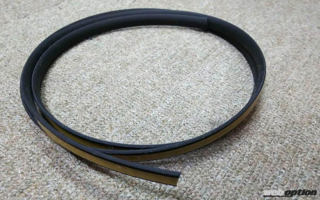 製品は純正同様のサイズと厚みのゴムで、粘着テープで貼り付けるというシンプルなもの。劣化した純正ゴム部をカッターナイフ等で取り除き、そこにリペアゴムを貼り付ければ完成だ。