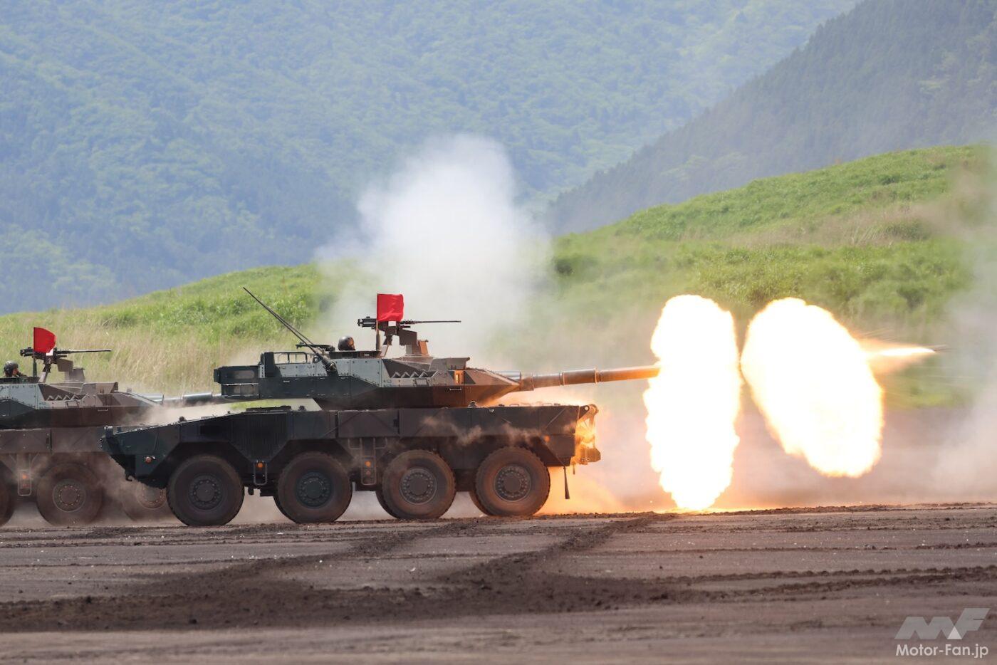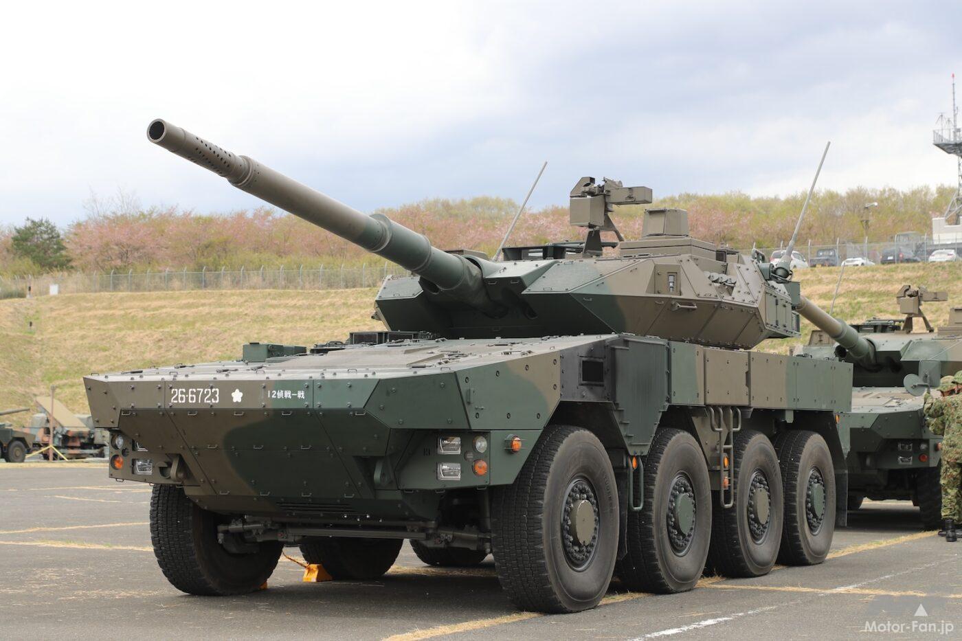16式機動戦闘車は、装輪(タイヤ)式の車体に戦車型の砲塔を載せたもので、「戦車駆逐車」や「装輪戦車」と呼ばれることもある。このタイプの車両を自衛隊が導入するのは、これが初めてであり、自衛隊ファンの注目を集めた。