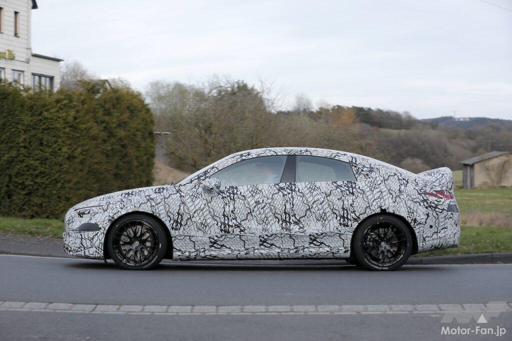 ニュルブルクリンク付近で捉えたプロトタイプは、カモフラージュが厳重ながら、以前よりかなり鮮明に撮影された。フロントグリルは完全にクローズされてはいるものの、長距離を走行できるように流麗なクーペシルエットが確認できる。また後部では、スリーポインテッドスターからインスピレーションを得たLEDテールライトグラフィックも見てとれる。