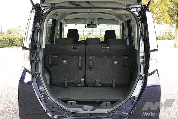 ㎜と少し持て余すほどの広さがあり、シートには240㎜のスライド機構も装備、用途に応じて荷室の奥行きを拡大することができる。