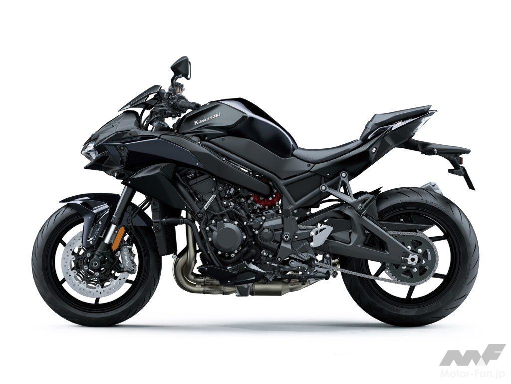 カワサキの頂点を示すブランドネームが、世界最強レベルのネイキッドスポーツである事は容易に推察できるだろう。2020年12月には2021年型Z H2としてカラーリングが変更され、ハイテンション・スチールのパイプワークが美しいトレリスフレームもブラックアウトされた。
