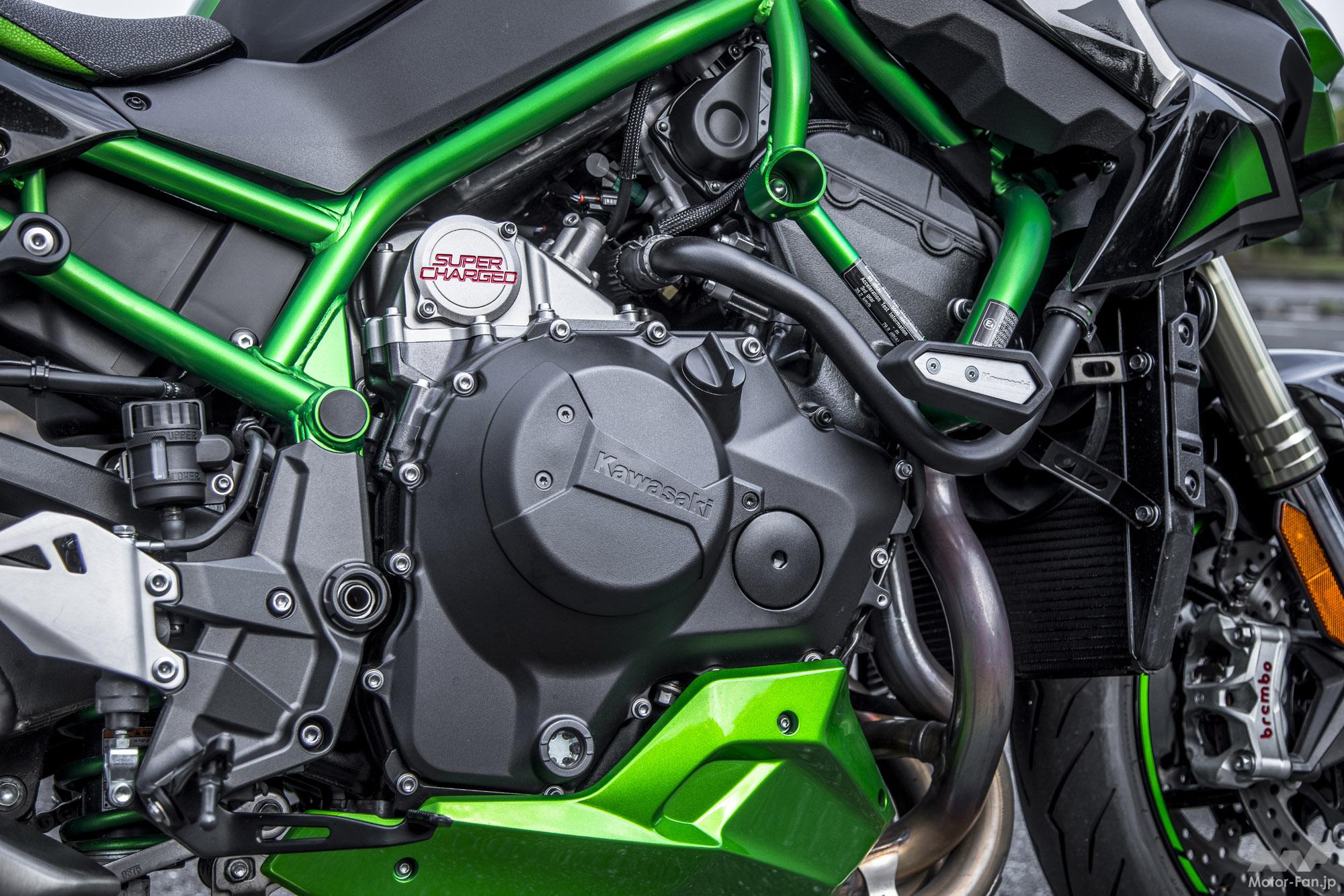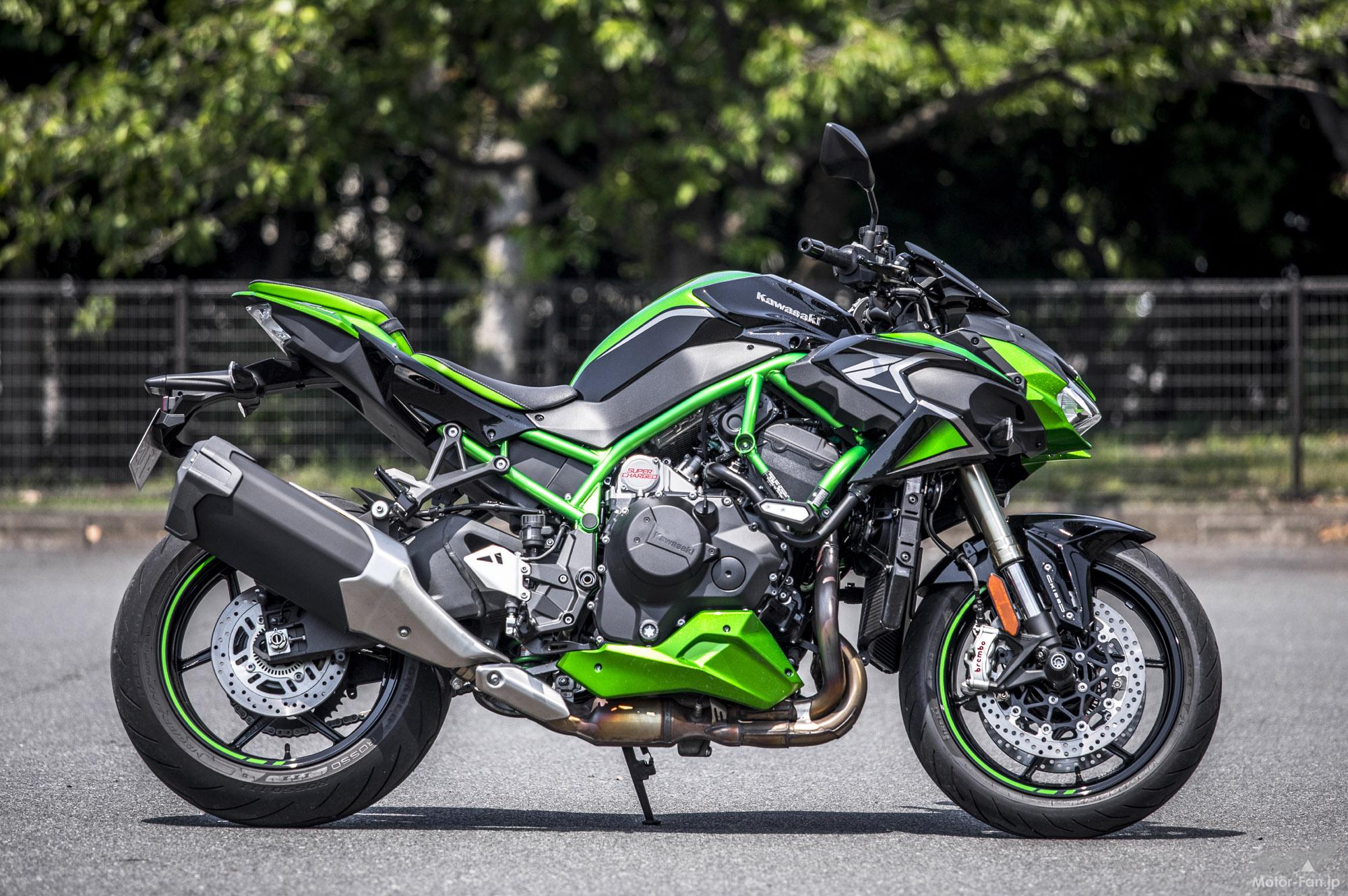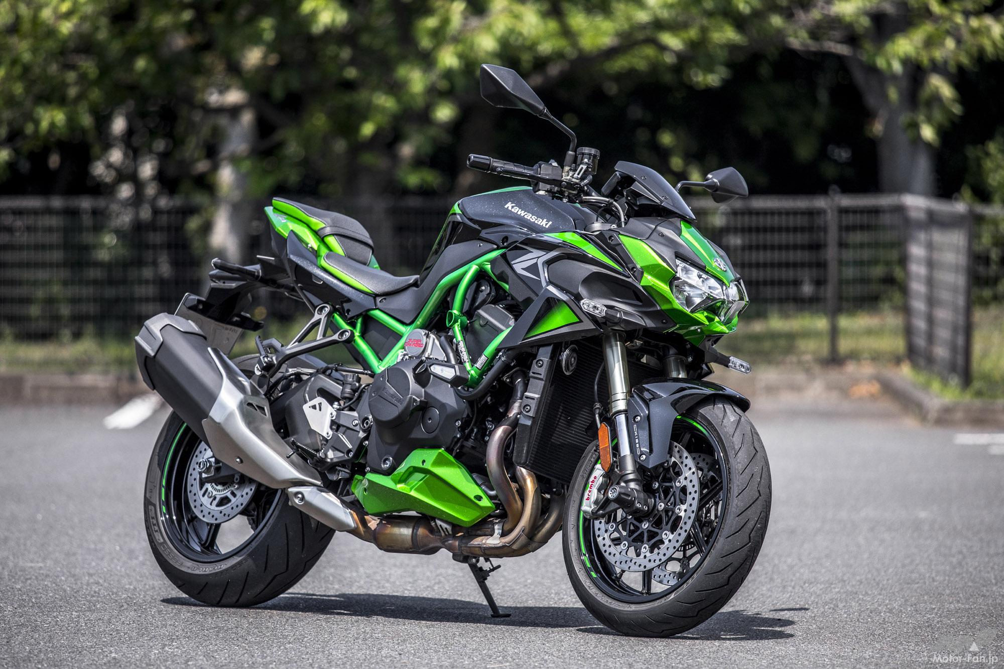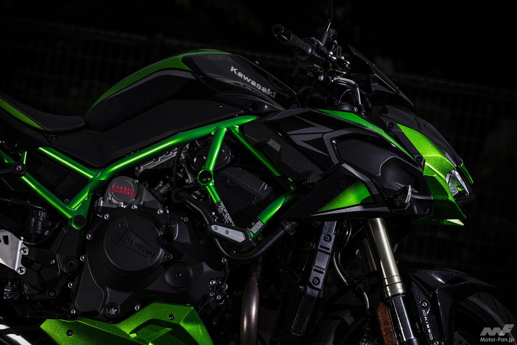 カワサキの頂点を示すブランドネームが、世界最強レベルのネイキッドスポーツである事は容易に推察できるだろう。2020年12月には2021年型Z H2としてカラーリングが変更され、ハイテンション・スチールのパイプワークが美しいトレリスフレームもブラックアウトされた。