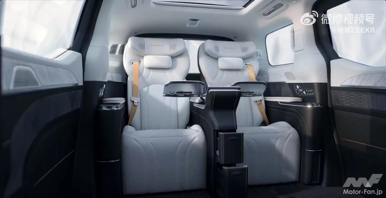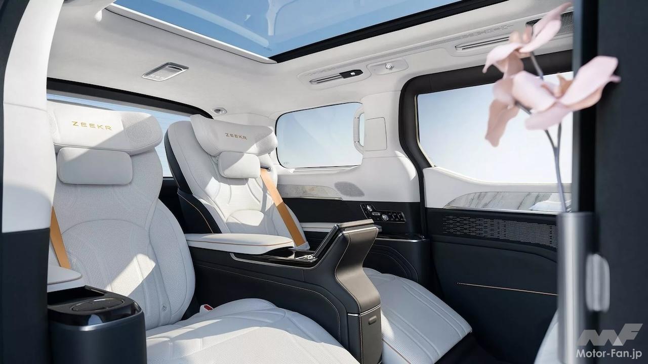 キャビン内では、パワーレッグレストや、内蔵スピーカーとヘッドレストを備えた、2つの独立した後部座席を装備するなど、大きな進化もみられる。これらは、引き出し、折りたたみテーブル、圧巻の大型ディスプレイを備えたセンターコンソールによって区切られる。