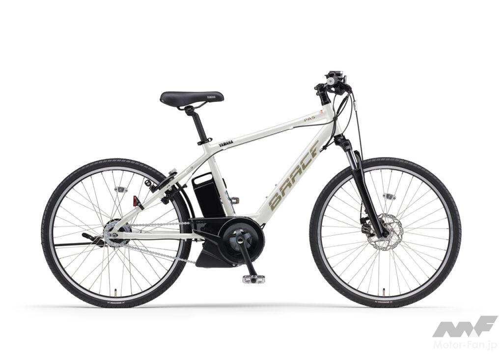 スポーティな26型「パス ブレイス」のコンセプトは「日常使いしやすいスポーティコミューター」で、通勤用の電動アシスト自転車として、スポーティな外観と走行性能を求める男性をメインターゲットに開発。内装8段変速ラピッドファイヤーシフト、26型セミスリックタイヤ、フロントディスクブレーキ・リアVブレーキなどによるスポーティな走行性能が特徴だ。