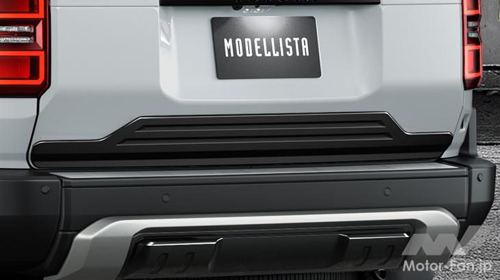 タフで力強い印象をサイドビューに付与する。艶ありブラックと艶消しブラックを組み合わせることで、スタイリッシュなアクセントとして、MODELLISTA エンブレムを配することで、特別感を演出する。