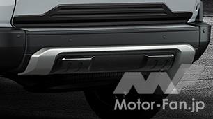 ソリッドな面構築と金属調/ブラックのコンビネーションが洗練した力強さを表現。ブラック部は立体感のあるラギッドなデザインにすることで、リアボトムのガード感とタフさを創出している。