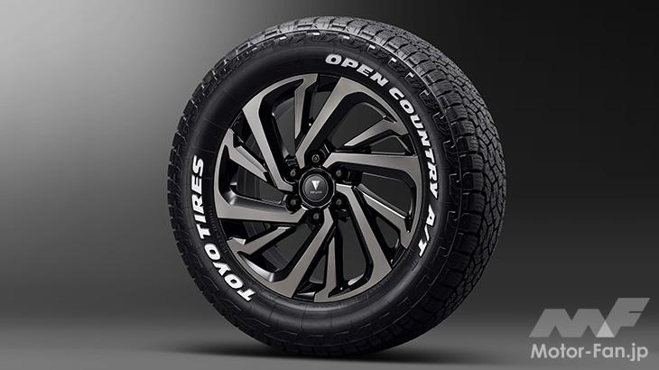 モデリスタとして、ホワイトレタータイヤは初採用となる。ランドクルーザー 250 向けにタイヤチューニングを実施し、乗り心地や操縦安定性を向上している。ホイールデザインは、ダイナミックでメカニカルな印象を際立たせ、ブラック×ポリッシュ/ブラッククリア塗装を施しアーバンギア感を演出する。(セキュリティロックナット付)