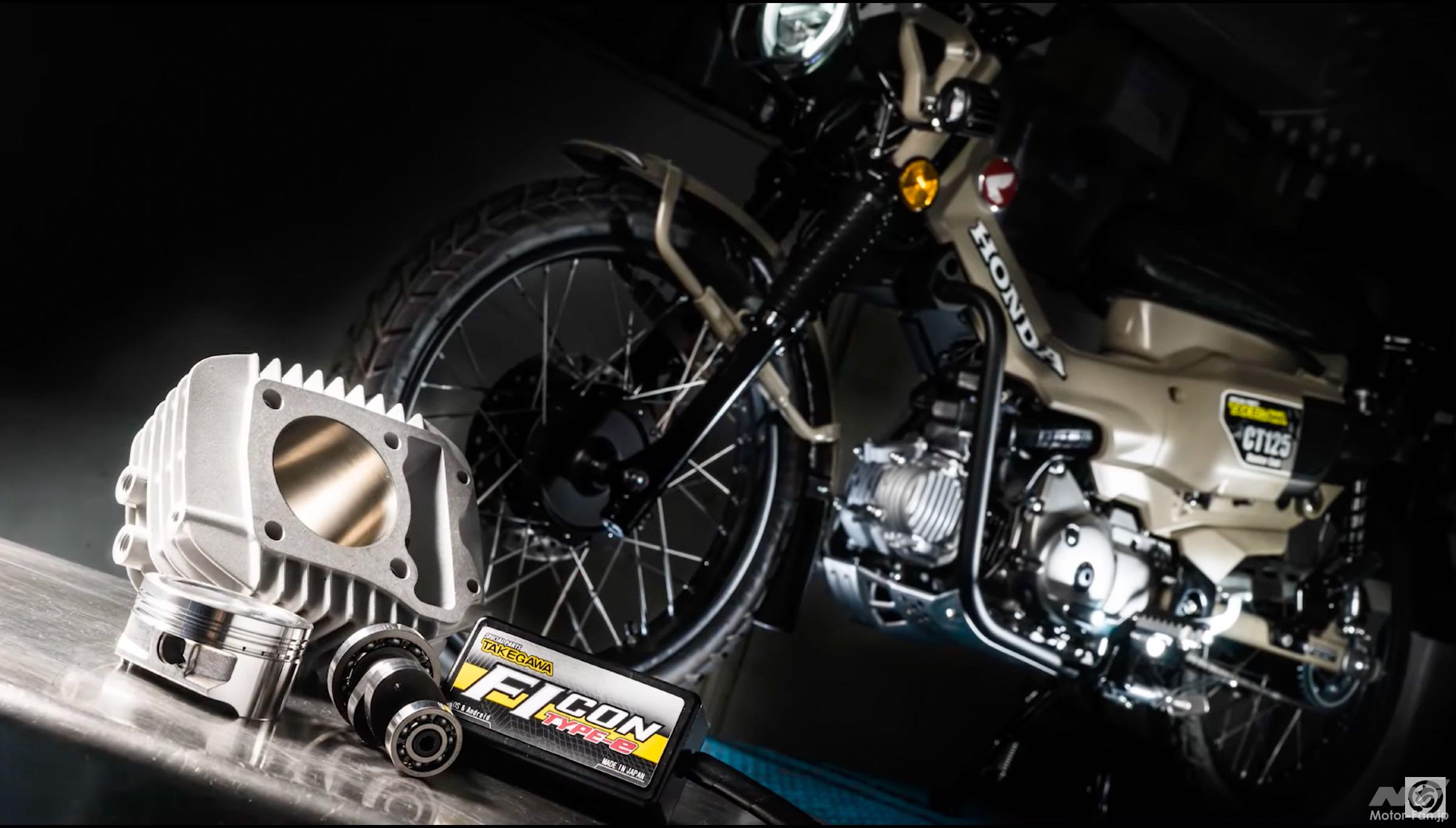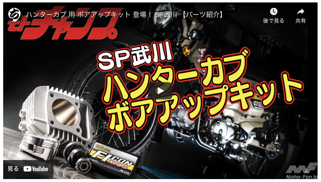 しっかりしたフレーム剛性と悪路でも優れた走破性、高い人気を維持してきたオリジナルのCT110を受け継ぐスタイリングなどから人気沸騰中のホンダCT125ハンターカブ。でも、さらなるパワーが欲しいという意見も多い。最も簡単に速さを実現するなら、ボアアップに勝るものはない。そこで気になるのがどの製品を選べばいいのかということ。今回紹介するのは「モトチャンプTV」で2020年12月に公開された「ハンターカブ用ボアアップキット登場! SP武川【パーツ紹介】」だ。