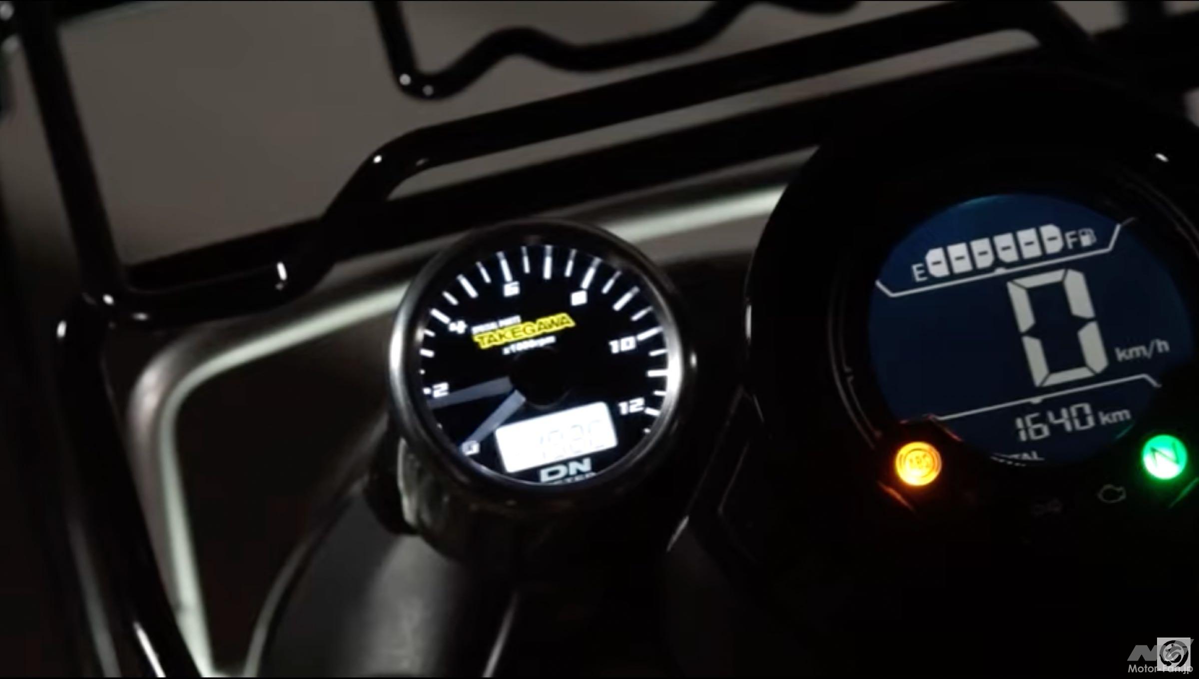 紹介している車両はSP武川のコンプリートモデルとも呼ぶべき存在。ボアアップキットだけでなく、さまざまなパーツが組み込まれているので同時に紹介している。タコメーターの針の動きやライトの明るさなどはモトチャンプ本誌とともに動画で確認するとわかりやすいはずだ。