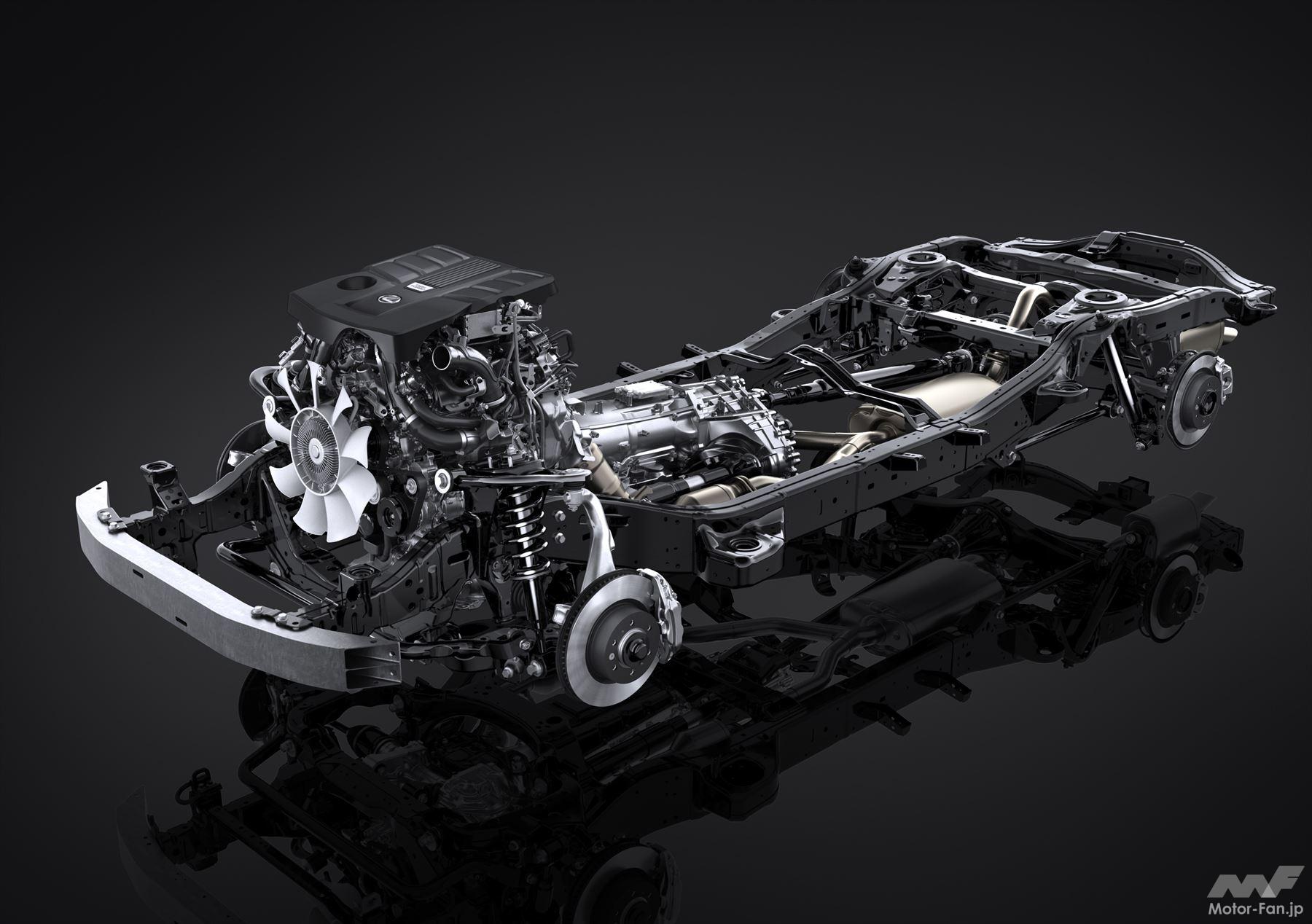 ランドクルーザー250では2.8L直列4気筒ディーゼルターボ+8速ATと、2.7L直列4気筒ガソリンターボ+6速ATが展開される。