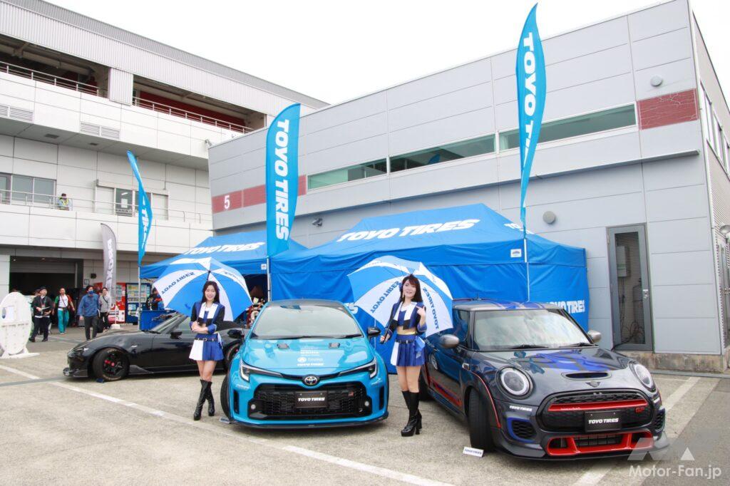 ピット前にはミニ・ジョン・クーパー・ワークス、トヨタGRカローラ、マツダ・ロードスターのチューニングカーが勢揃い。それぞれ「プロクセス」シリーズの「スポーツ2」、「TR1」、「R1R」を装着する。