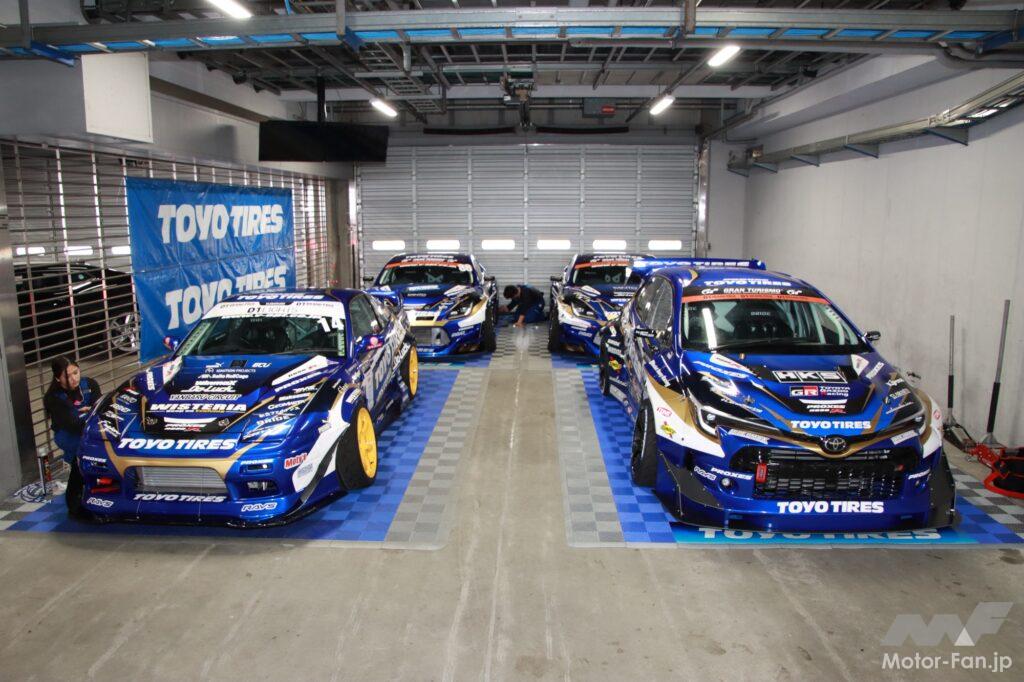 そしてピット内では、川畑真人選手のトヨタGR86、藤野秀之選手のトヨタGR86、松山北斗選手のGRカローラ、玉城詩菜選手の日産180SX、「TOYO TIRES D1GP」4台のD1グランプリ参戦マシンを展示している。