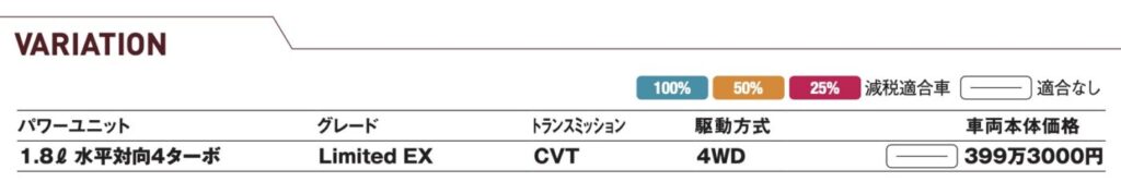 1.8ℓ直噴ターボ〝DIT〞+リニアトロニック+AWDを基本に、最新のD型レヴォーグ同様、ステレオカメラに加え広角単眼カメラを搭載した新世代アイサイト、アイサイトセーフティプラス、渋滞時ハンズオフドライブ、アクティブレーンチェンジアシスト、カーブ前速度制御、料金所前速度制御などの高機能をもつアイサイトXを標準装備する「Limited EX」の1グレードの展開。最低地上高はレヴォーグの145㎜から本格SUVに匹敵する200㎜に高められているのも大きな特徴だ。
