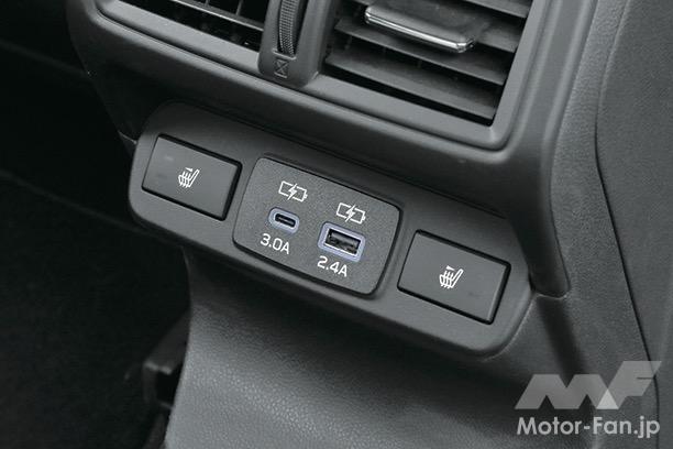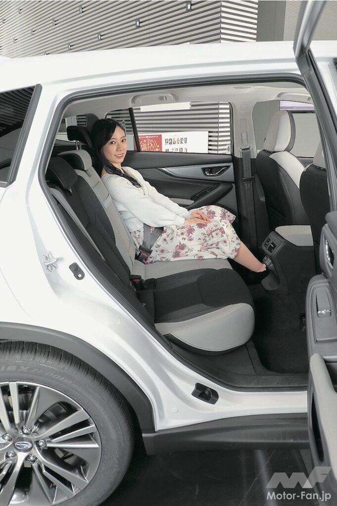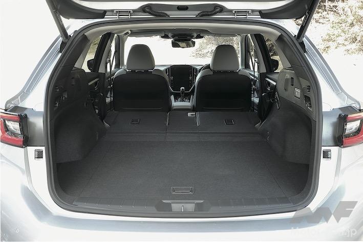 一方、インテリア、キャビン、ゲッジルームを含むパッケージングは基本的にレヴォーグと同一。が、ブラック×アッシュカラーのあしらい、カッパー色のステッチはレイバック専用だ。そしてD型レヴォーグで新機能を追加したデジタルマルチビューモニター、ハーマンカードンサウンドシステム、リモートエアコン機能を加えたSUBARU STARLINK、Andoroid Auto対応の11.6インチセンターインフォメーションディスプレイなどは最新のレヴォーグ同様に標準装備。ちなみにフロントシートは着座位置の高まりに伴う乗降性に配慮し、シートのサイドサポート部分を低めている(サポート性は問題なし)。
