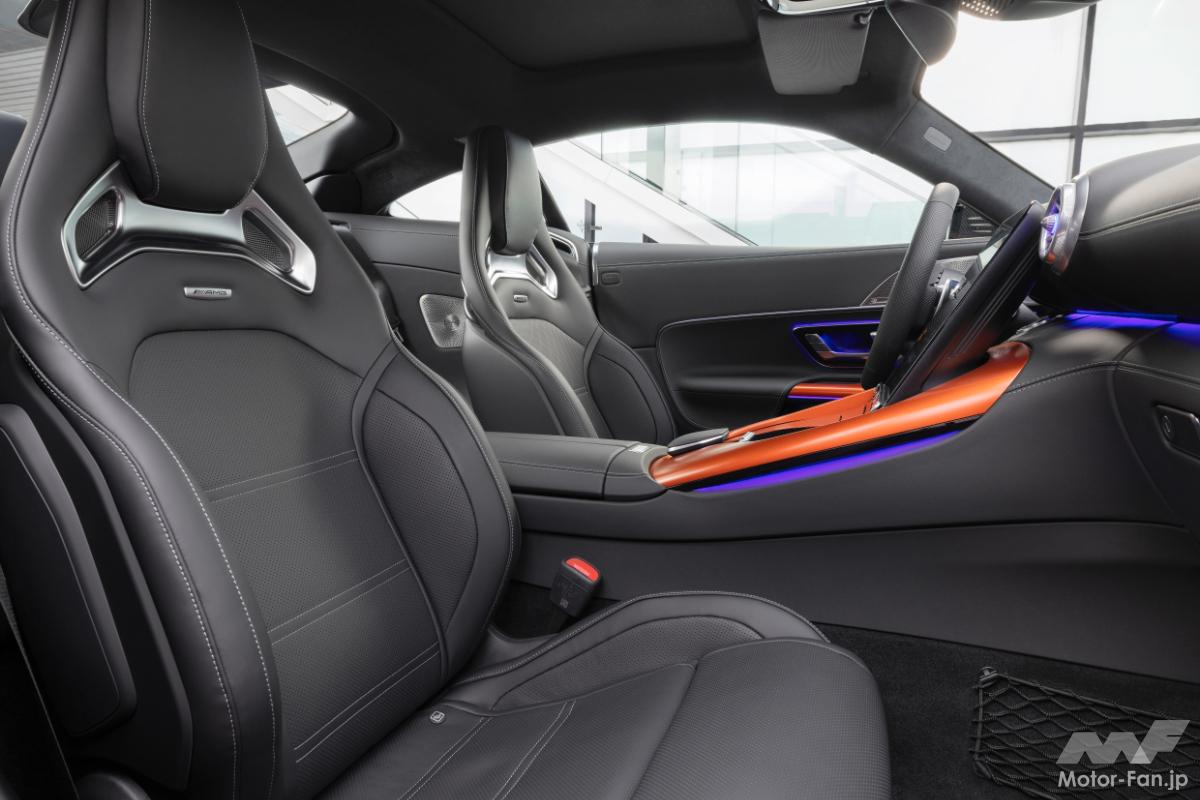 インテリアは、ドライバー主体のパフォーマンスと快適性を兼ね備えたコックピットに仕上げられている。インテリアのハイライトのひとつは、電動調整式AMGスポーツシートだ。このシートは、優れた横方向のサポート性と高い長距離快適性を兼ね備えており、3つのマッサージ・プログラムにより、優れた長距離快適性を実現する。大型ディスプレイには、MBUXマルチメディアシステムが搭載され、直感的な操作と学習機能を備えている。