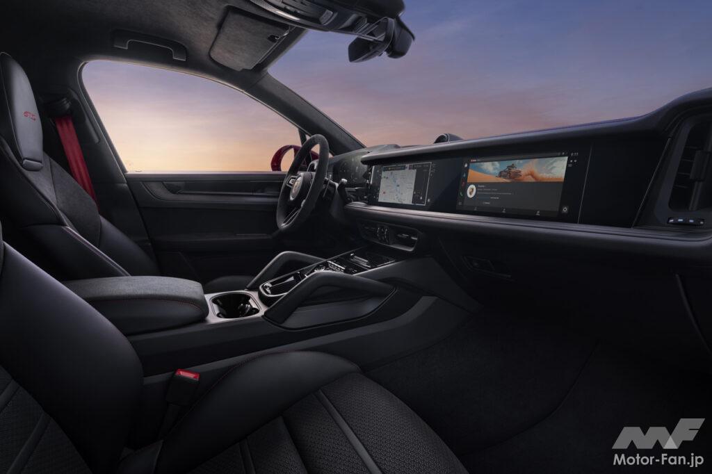 新しいGTSモデルは、標準装備の曲面デジタルメーターパネルとオプションのパッセンジャーディスプレイを備えた新しいポルシェドライバーエクスペリエンスを含む、カイエンの広範な最新の製品アップグレードの恩恵を受けている。スポーツデザインパッケージ、ダークティンテッドHDマトリクスLEDヘッドライト、エアサスペンションに加え、BOSE製サラウンドサウンドシステムとアンビエント照明も装備する。