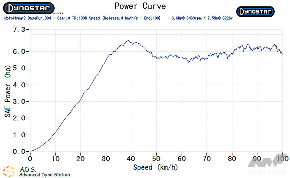 明らかに駆動系がヘタッている……という雰囲気ではない。でも厳密に言うなら、発進直後は右手の動きと加速感がいまひとつリンクしないし、70km/hを超えるとスピードの伸びが衰えることも腑に落ちない要素。
