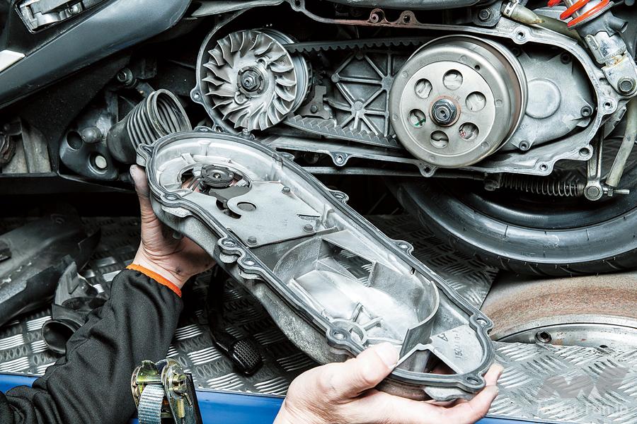 Vベルトは絶えずプーリーとクラッチに挟まれ回転しているため、摩耗により幅が細くなってしまう。そうなると高速域まで変速できずに最高速がダウン。そのため定期的な交換が必要なのだ。また、接触面の反りや弾力もチェックしたい。