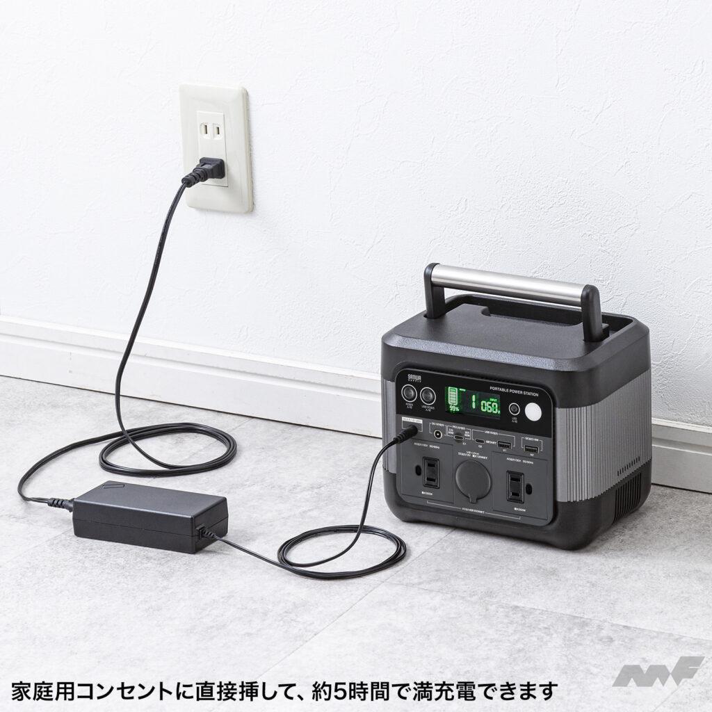充電は3方式に対応しており、家庭用コンセントからは高出力ACアダプタ(付属)によって約5時間で満充電を行なえる。また、クルマのシガーソケットからはシガープラグアダプタ(付属)を使って蓄電が可能。ソーラー充電ケーブル(付属/MC4コネクタ)と別売の同社製ソーラーパネル『BTL-SP1』や市販品を接続して太陽光からの蓄電もOKだ。“MPPT(最大電力点追従制御)”機能によって最大の電力を取り出した効率的な蓄電を実現する。