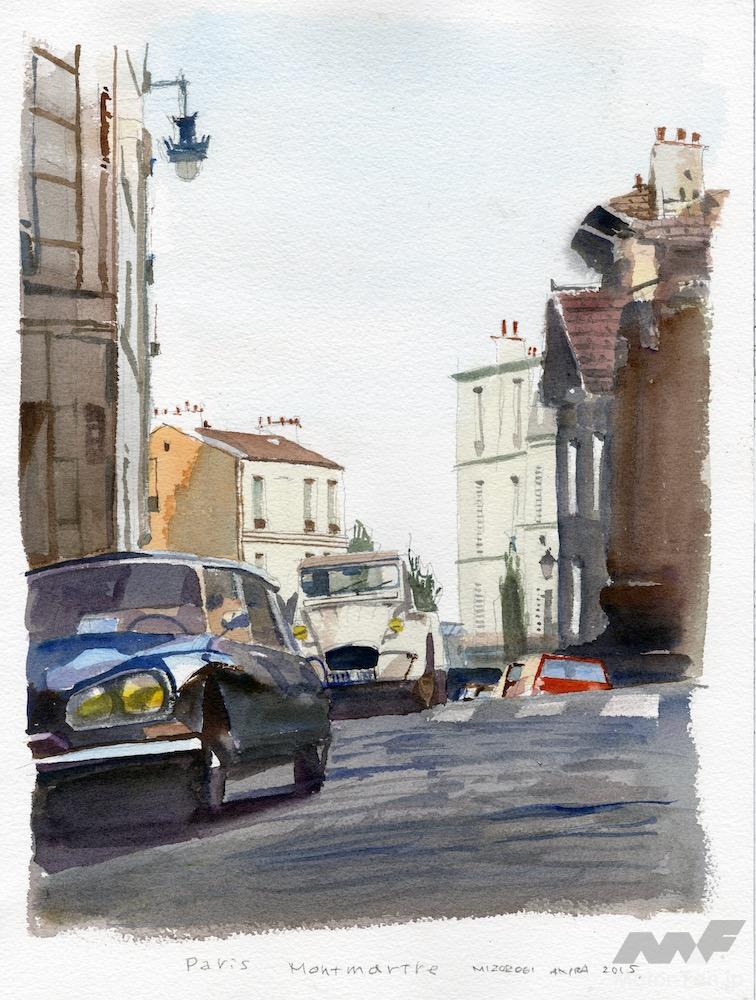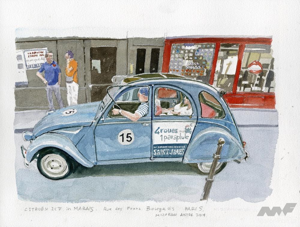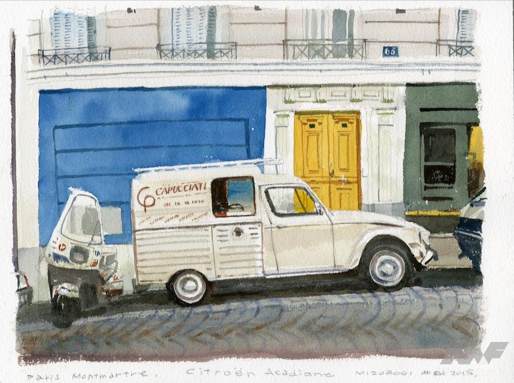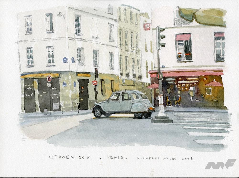 そんなパリへの恋焦がれる想いを乗せて、今回はフランスの街並みとは切っても切れない“絵になる”シトロエンたちを水彩画でご紹介いたします。