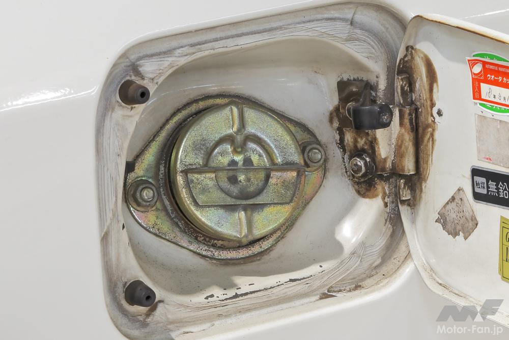 この給油口の静電気対策、SUBARUアイサイトの歴史をイチから調べたことはあっても、さすがに給油口の歴史は調べたことがないので、いつ頃から始まったものなのかはわからないが、とにかく下に掲げるような、現在旧車と呼ばれているような年代のクルマにはついていないことは確かである。
