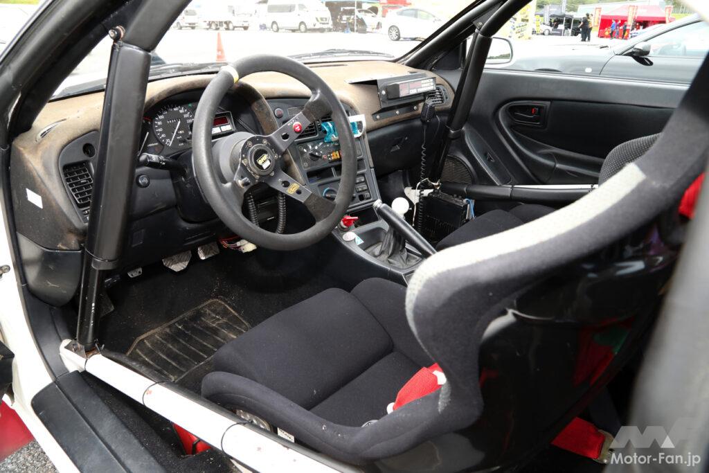 グループNなので市販のGT-FOURと大きく変更されている部分は少ないが、大型のルーフベンチレーションや市販されていないTTEのロゴが入るダイマグ製のホイール、室内のラリーコンピューターなど、当時のままの本物の装備が只者ではない雰囲気を醸し出している。